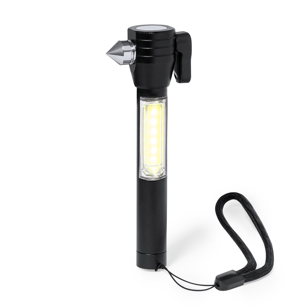 Marteau d’urgence polyvalent. Il dispose de trois fonctions : une puissante lampe de poche avec 6 lumières COB alimentées par des piles bouton (incluses), une pointe métallique cassante et une lame de coupe-ceinture. Zone aimantée en haut et bande pour un meilleur maintien. Présenté dans une boîte unique kraft.