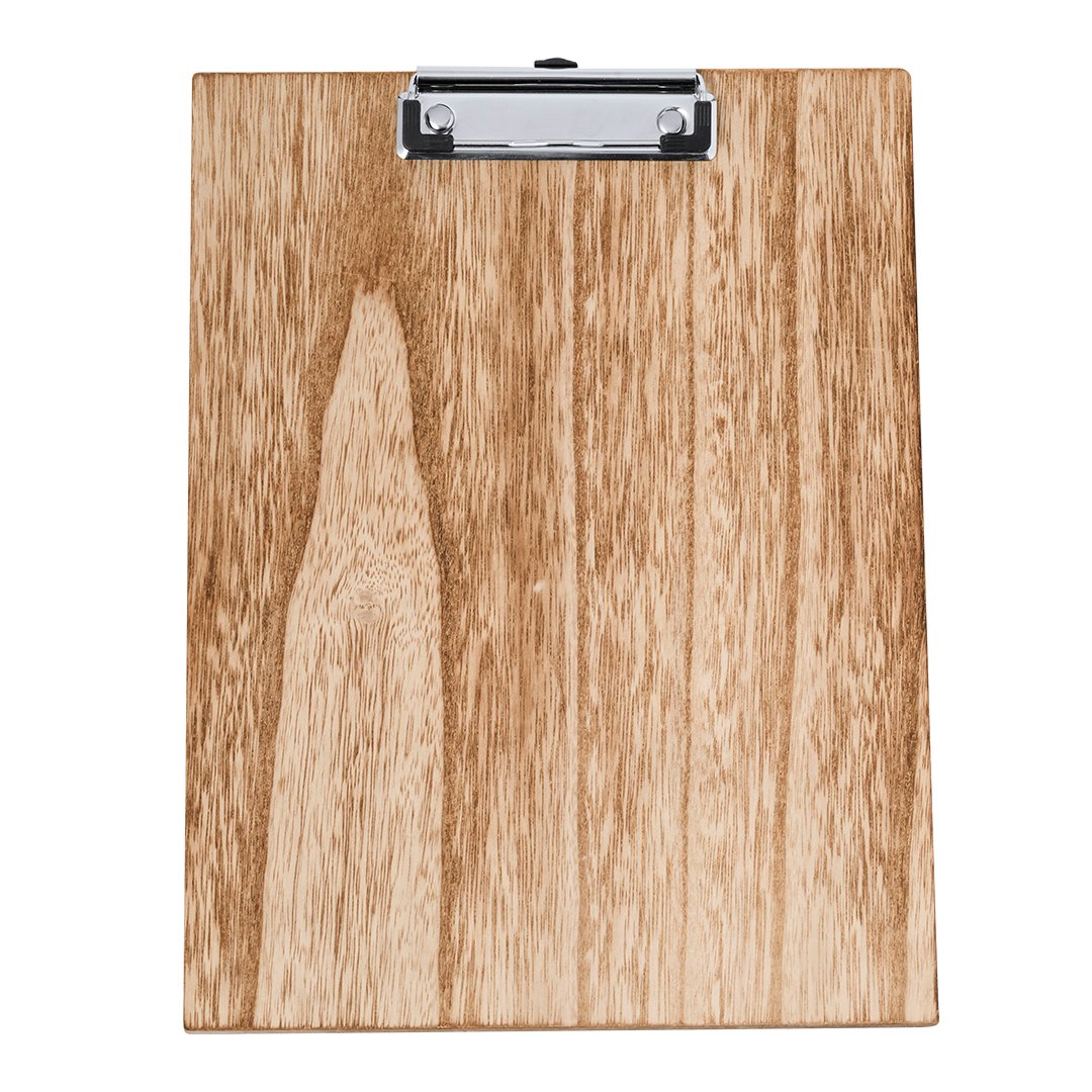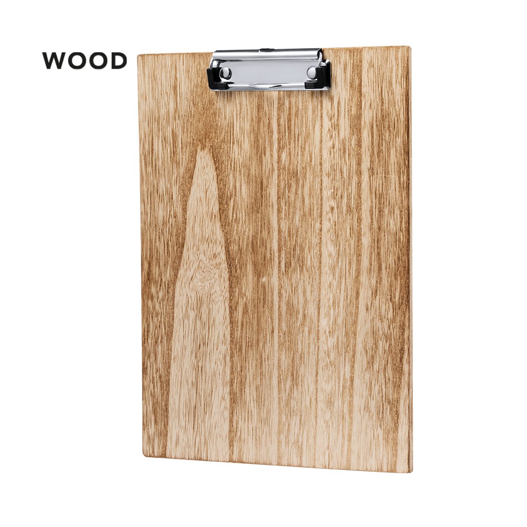 Excellent organisateur en bois doux de taille A4. Avec une pince de documentation robuste et présenté individuellement dans un boîtier design kraft.