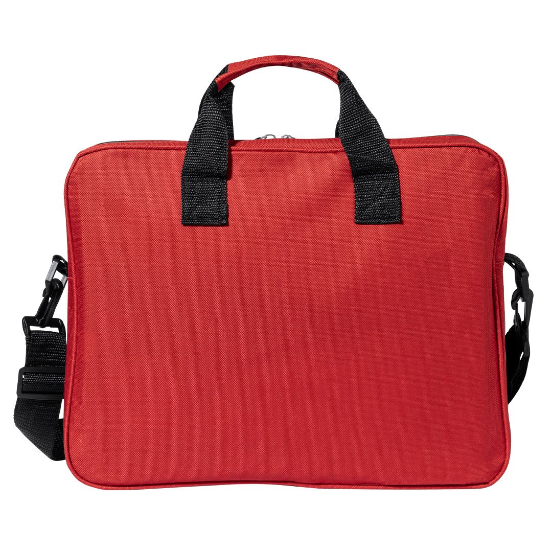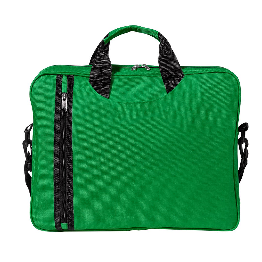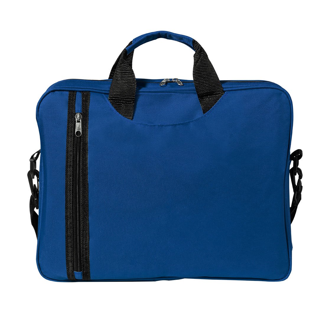 Sacoche porte-documents à fermeture zippée avec poche originale verticale sur le devant et compartiment sous les poignées en polyester doux 600D. Proposée en différents coloris. Poignées de transport renforcées assorties et bandoulière réglable avec fermetures par mousqueton.