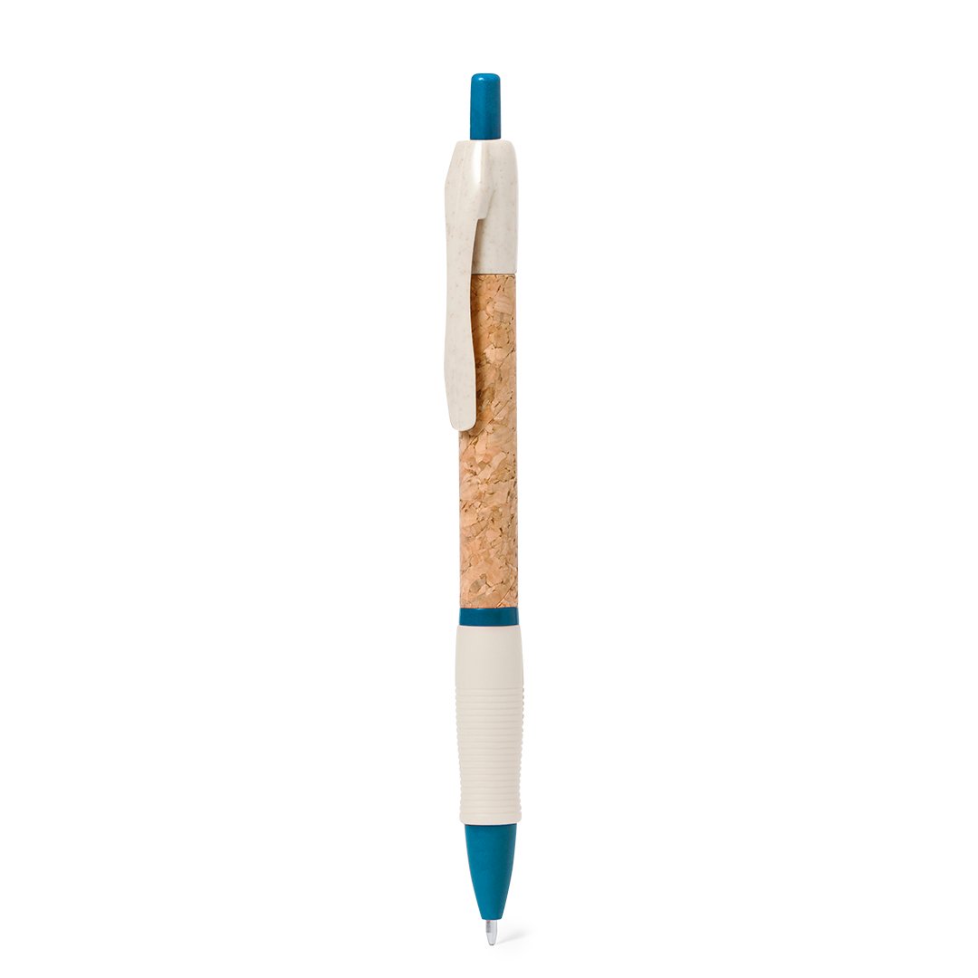 Stylo à bille à bouton-poussoir avec corps en liège naturel. Clip, pointe et bouton en canne de blé. Disponible dans une large gamme de couleurs. Signature Wheat Straw sur le dessus du stylo. A l’encre bleue.Fabriqué avec des éléments végétaux, afin de favoriser l’utilisation de matières premières naturelles et de réduire les émissions polluantes.