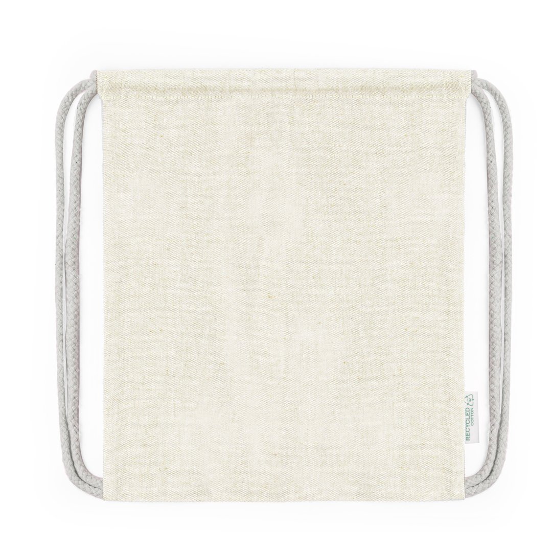 Sac à cordes en matériau coton recyclé de 120 g/m2. Cordes auto-fermées en coton, avec un écho Logo sur l’étiquette latérale et disponible dans une gamme variée de couleurs nature. Résistance jusqu’à 4 kg de poids.
