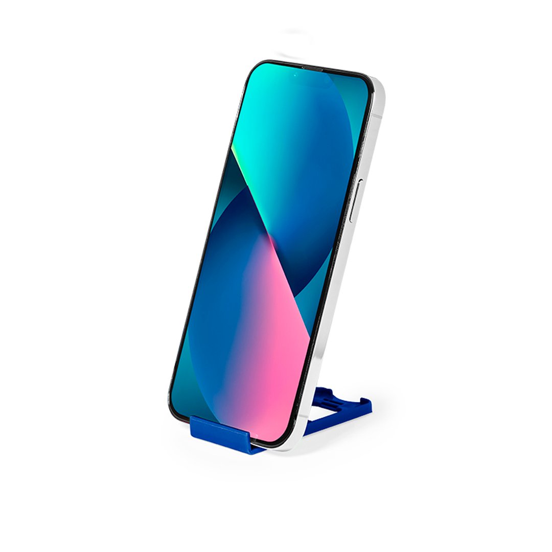 Support pour smartphone et tablette en PP résistant. Conception compacte et pliable pour que vous puissiez l’emporter partout. Avec différentes positions d’inclinaison. Disponible dans une large gamme de couleurs. Présenté dans un sac recyclé individuel.