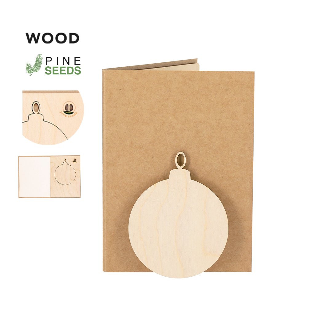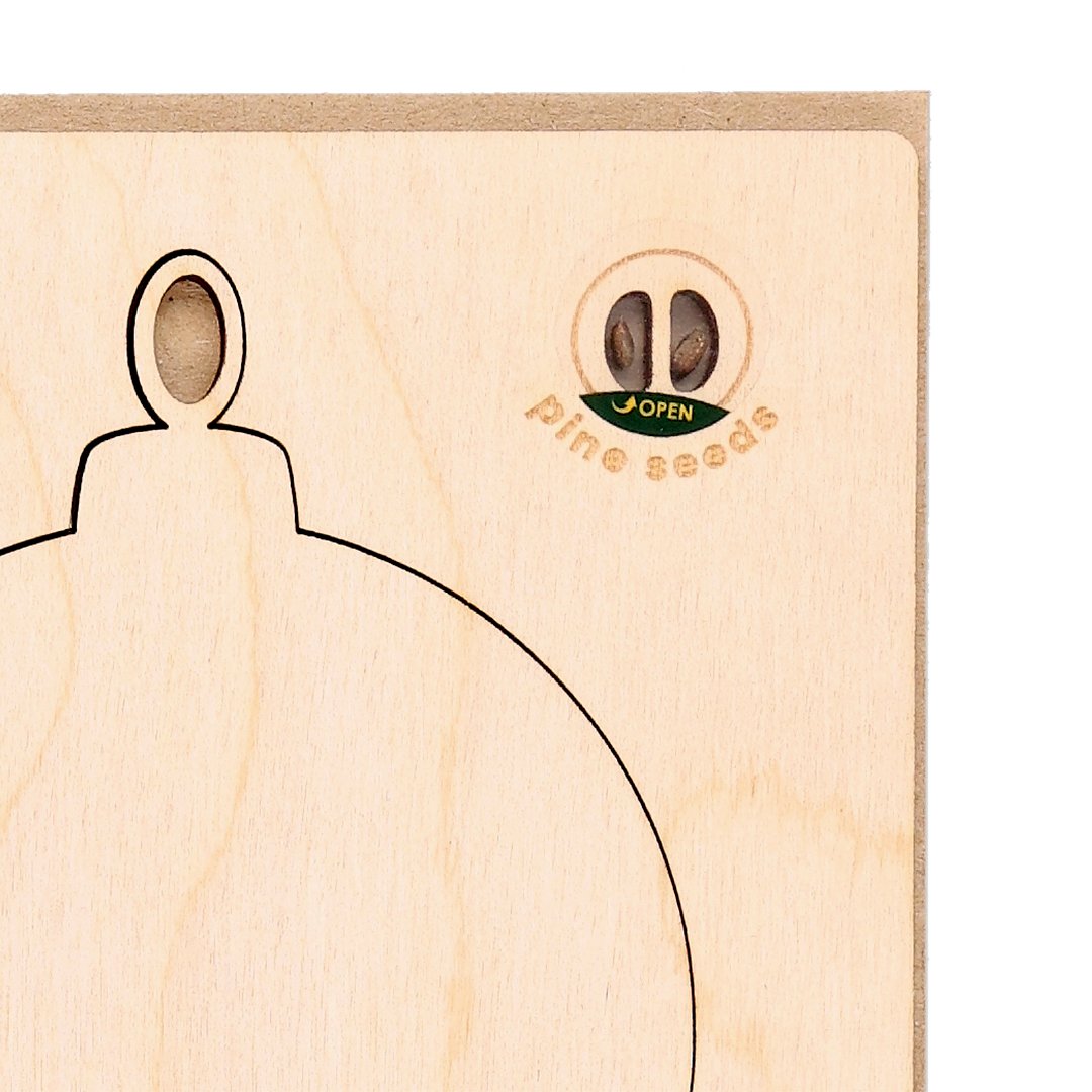 Ensemble de cartes de Noël durable et original avec des graines de pin, un cadeau écologique et surprenant. Contenu :Carte postale en papier Kraft.Boule de Noël en bois naturel avec découpe intérieure.Capsule de graines de pin intégrée.Fabriqué avec des éléments à base de plantes pour favoriser l’utilisation de matières premières naturelles et réduire les émissions polluantes.