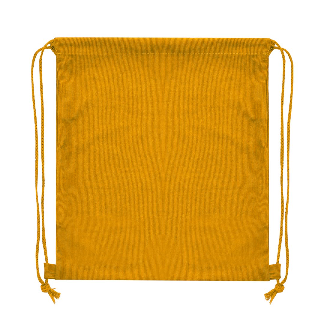 Sac à dos à cordes en velours côtelé de polyester résistant. Fini cousu, avec cordes assorties et renforts latéraux. Disponible dans une gamme de couleurs variées.