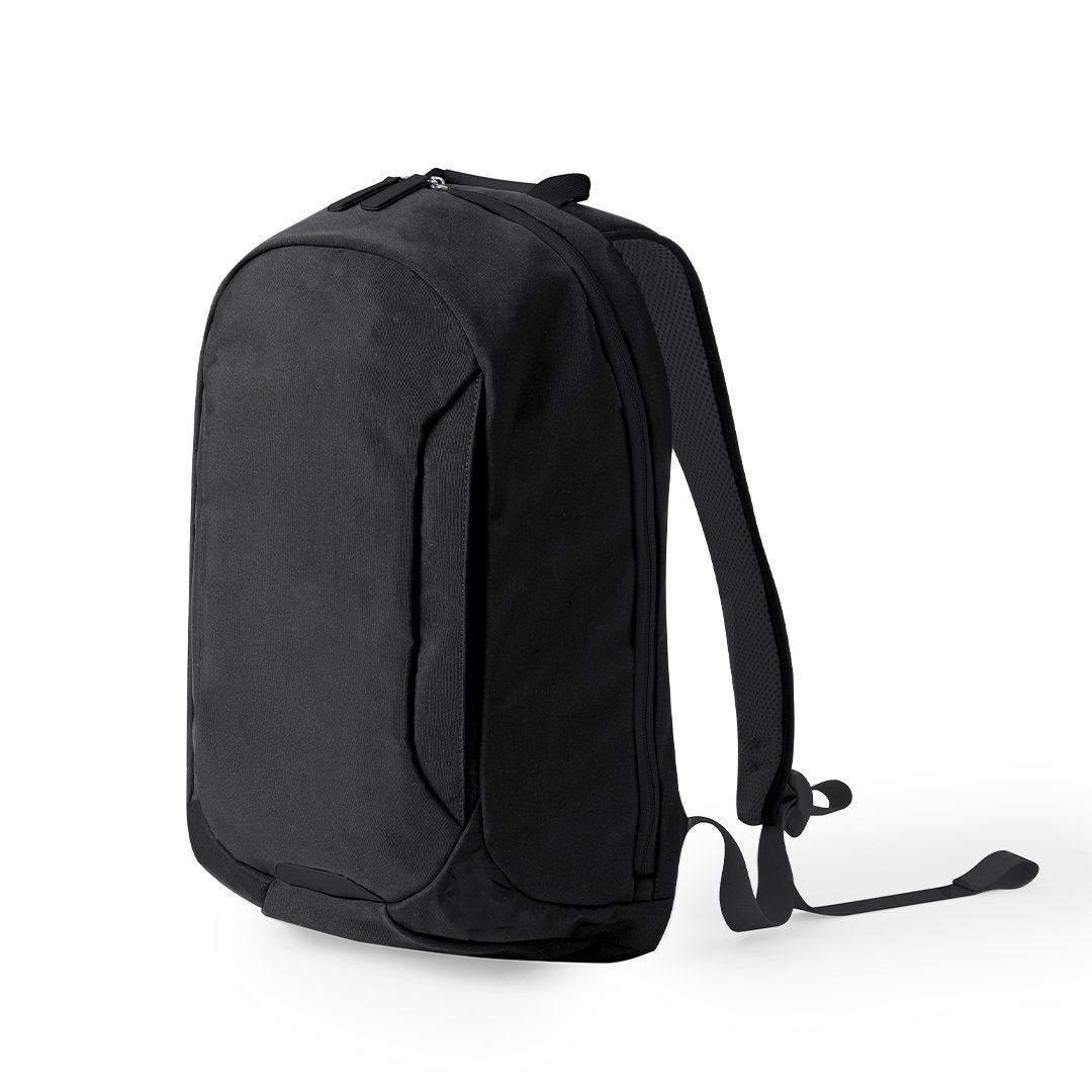 Sac à dos en polyester résistant, doté d’une fermeture à glissière à double poignée et d’une poche avant. À l’intérieur, il dispose d’un compartiment rembourré pour ordinateur portable jusqu’à 15 pouces et d’un compartiment pour tablette jusqu’à 10 pouces. À l’extérieur, il dispose d’une poche frontale à accès rapide et une poche arrière rembourrée pour stocker des objets de valeur, en incorporant un ruban pour la fixer aux valises. Ses coins renforcés offrent une durabilité, et comprend une poignée de transport, avec des accessoires élégants en noir. Les bretelles et le dos sont rembourrés et réglables pour plus de confort. Présenté dans un sac individuel recyclé.