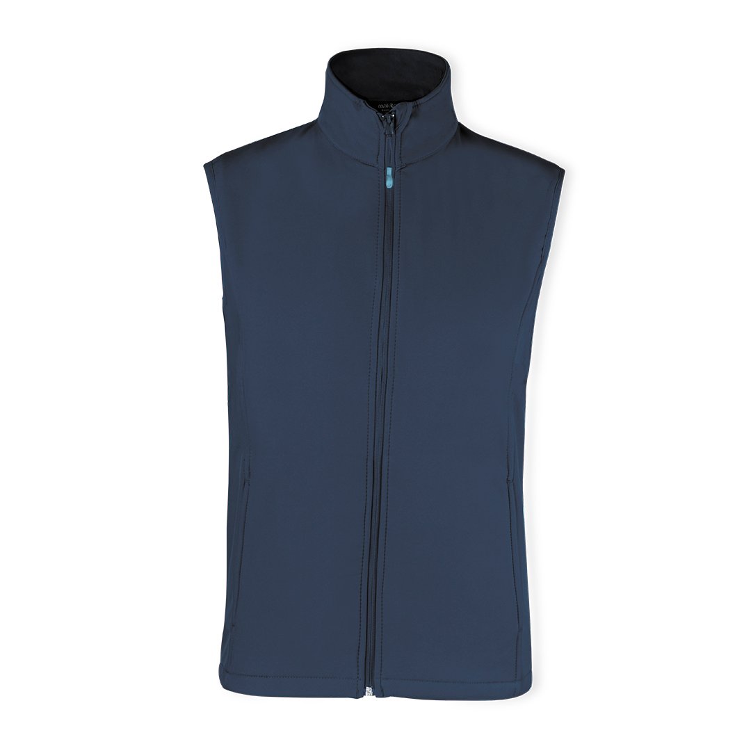 Gilet imperméable et respirant en combinaison de matière soft shell et élasthanne. Dans une large gamme de couleurs vives, avec fermeture à glissière et poches avant. Disponible en tailles S, M, L, XL, XXL.
