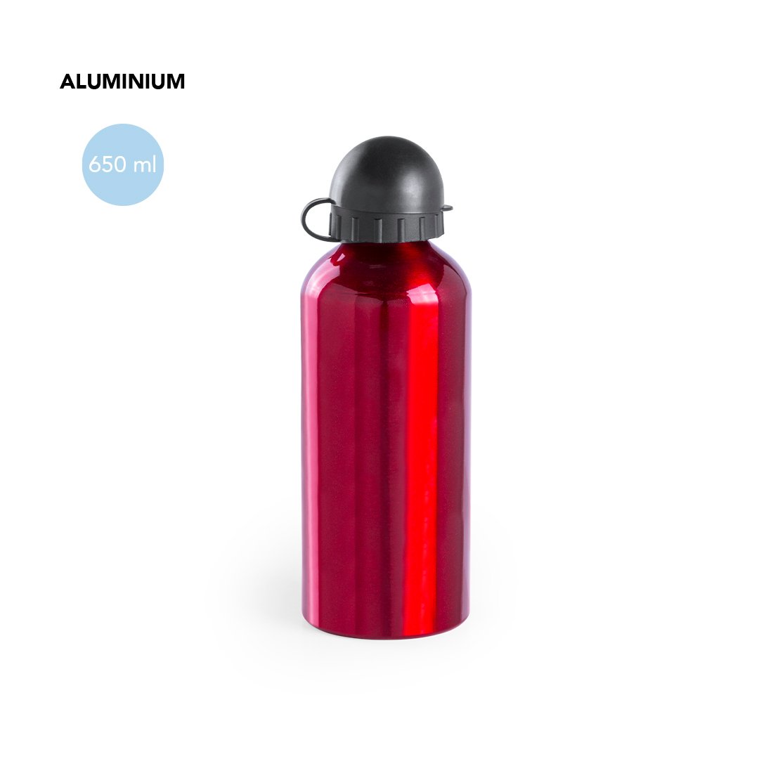 Gourde de 650 ml avec corps en aluminium dans des couleurs vives et variées. Bouchon à vis avec doseur sécurité et capuchon de fermeture. Présenté en boîte individuelle.Manuel d’instructions disponible en espagnol et en anglais.