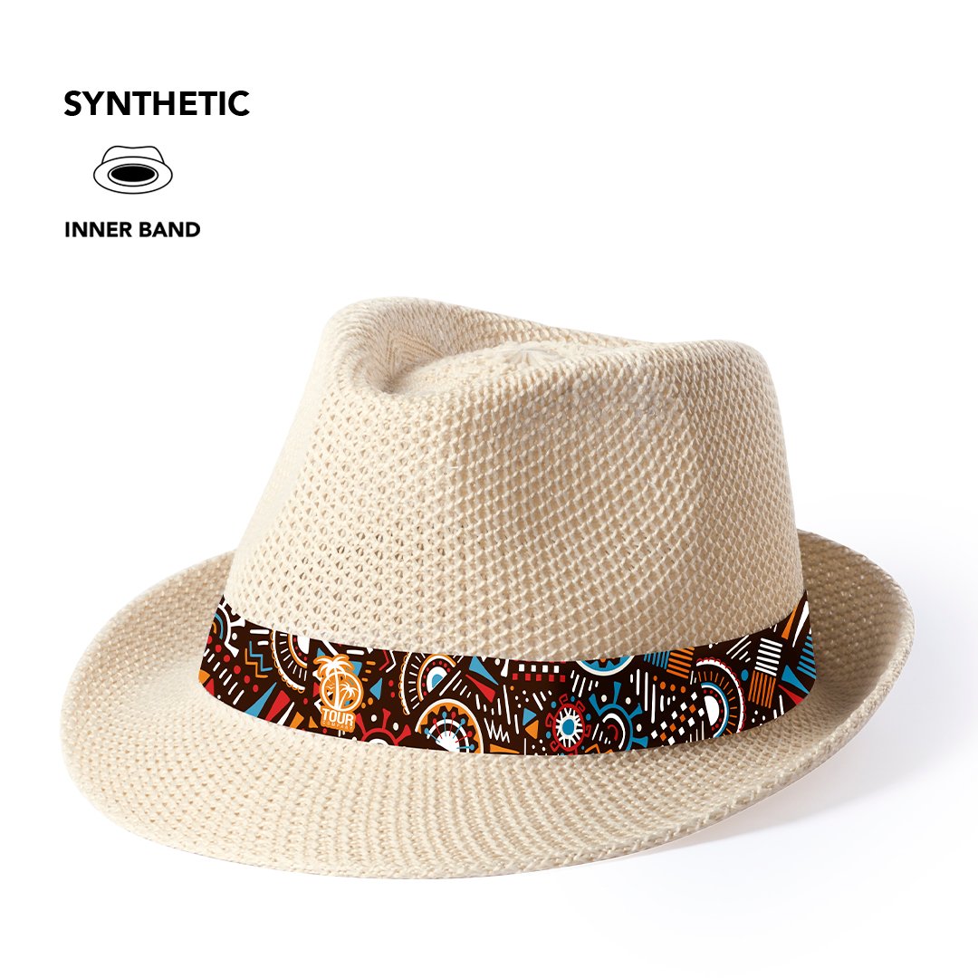 Chapeau de grande qualité en matière synthétique avec un ruban intérieur confortable assorti. Couleurs sobres.