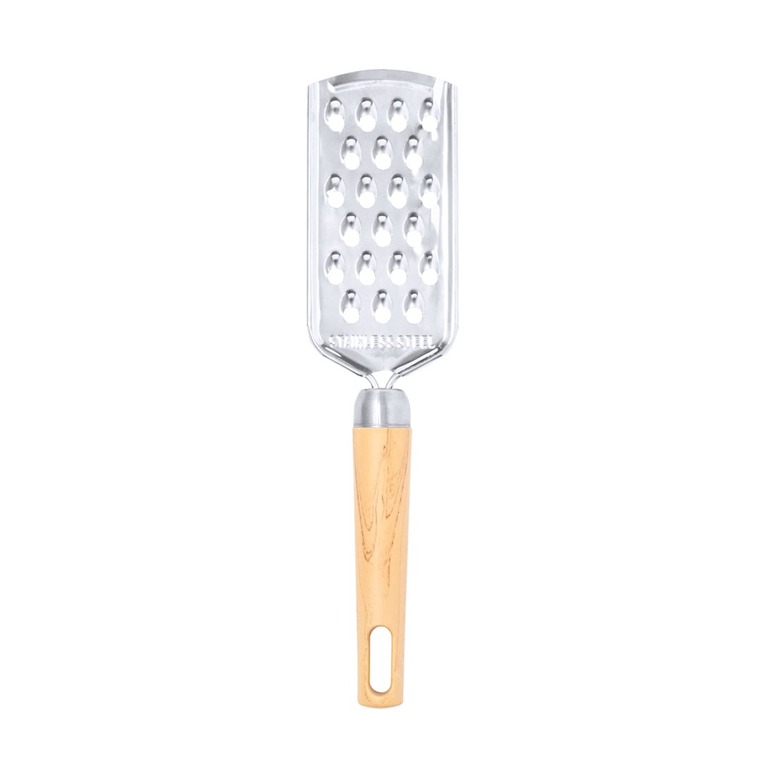 Hand grater made of stainless steel. It has an ergonomic handle made of PP, with an opening for easy hanging. Presented in a Recycled paper bag.