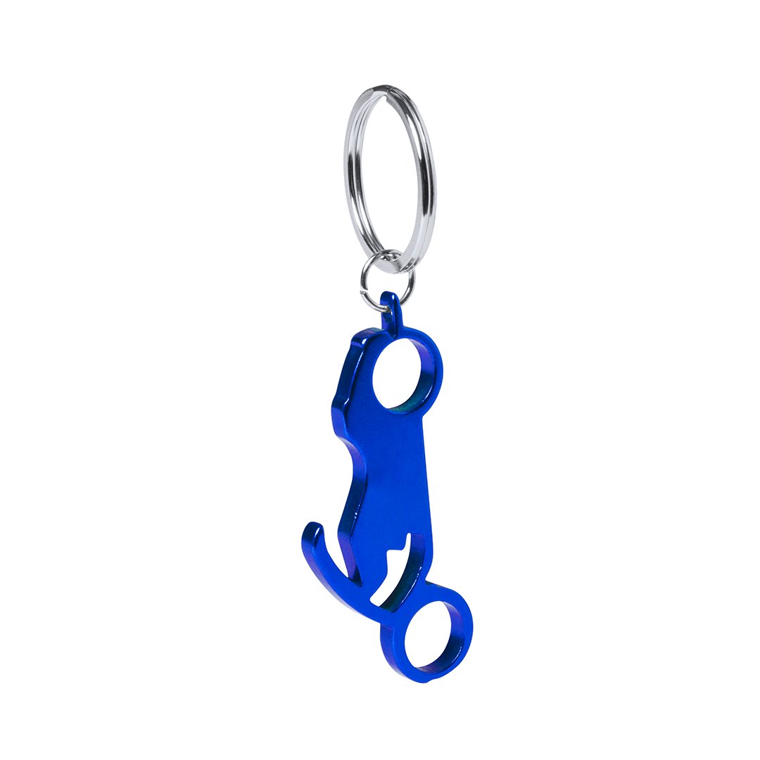 Porte-clés ouvre-bouteilles en aluminium en forme de moto. Coloris variés et brillants.