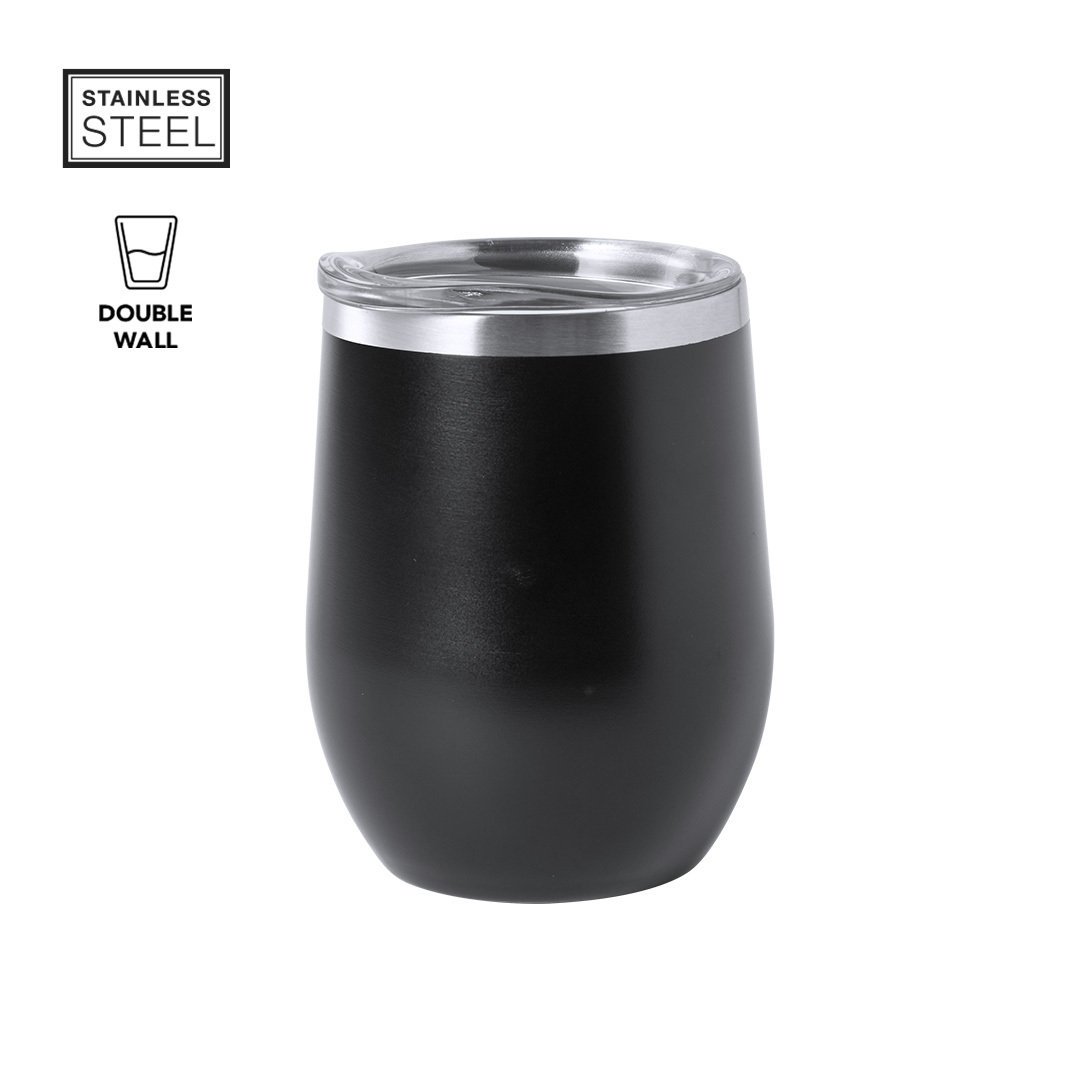 Verre thermiquee en acier inox, avec double paroi et 350ml de capacité. Comprend un couvercle avec doseur. Disponible dans une gamme de couleurs variées. Présenté dans une boîte de conception attrayante.