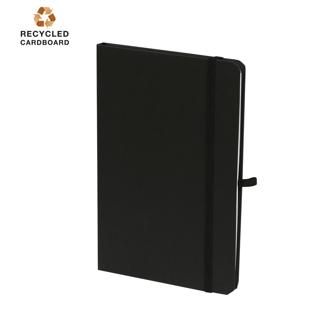 Bloc-notes avec notes adhésives en carton recyclé. Avec couvertures rigides et 80 feuilles lisses. Sur la couverture intérieure de la couverture, inclut : 25 feuilles adhésives jaunes, 125 mini notes adhésives de couleurs variées et un porte-cartes pratique en kraft. Avec support pour stylos et élastique assorti.Le Carton Recyclé provient de la valorisation des excédents de fabrication et du recyclage du papier en fin de vie, devenant ainsi une toile écologique et durable.