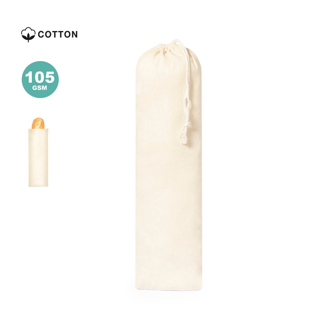 Sac à pain en coton naturel avec fermeture par cordon assorti. Finition cousue.
