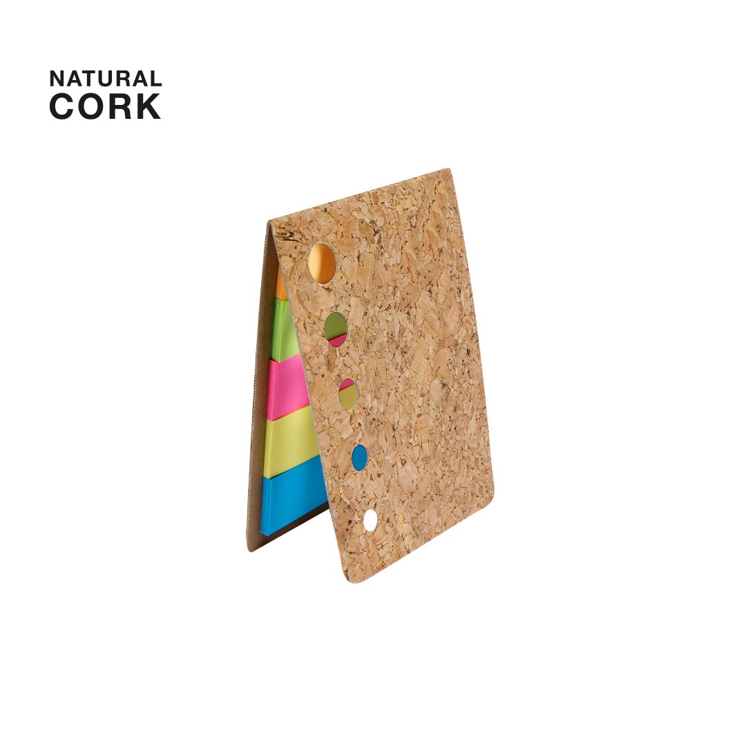 Bloc-notes autocollants fabriqué en liège. Inclut 100 mini notes autocollantes en plusieurs couleurs.Fabriqué avec des éléments végétaux pour promouvoir l’utilisation de matières premières naturelles et réduire les émissions polluantes.