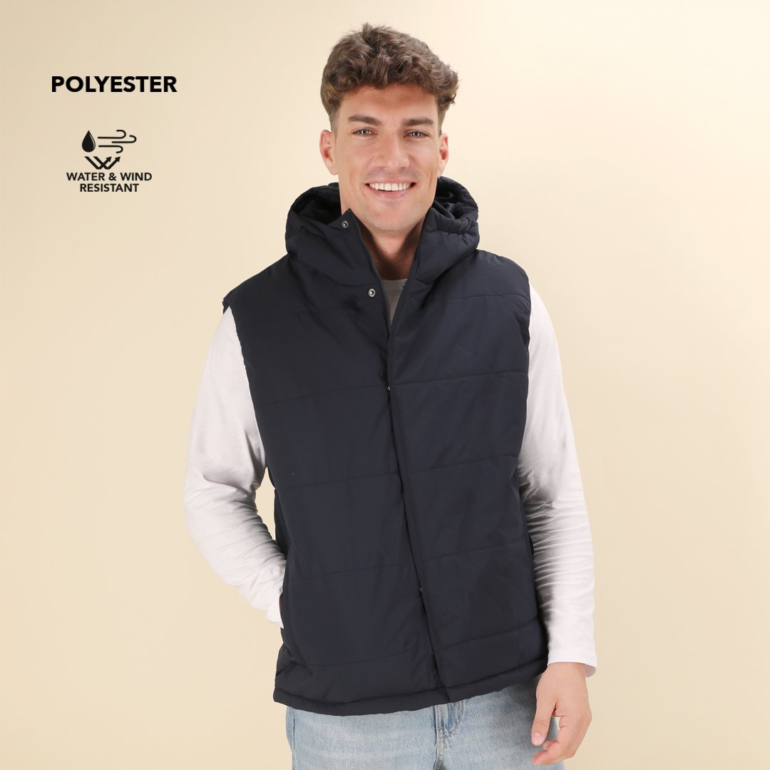 Gilet à capuche, en matière 100% polyester chaud et doux. En matière légère, résistante au vent et à l’eau. Conception de construction horizontale élégante et rembourrée, avec capot fixe intégré. Double fermeture à glissière devant et crochets. Poches latérales avec tirettes assorties et ourlet à cordon ajustable. Disponible en tailles XS, S, M, L, XL, XXL.