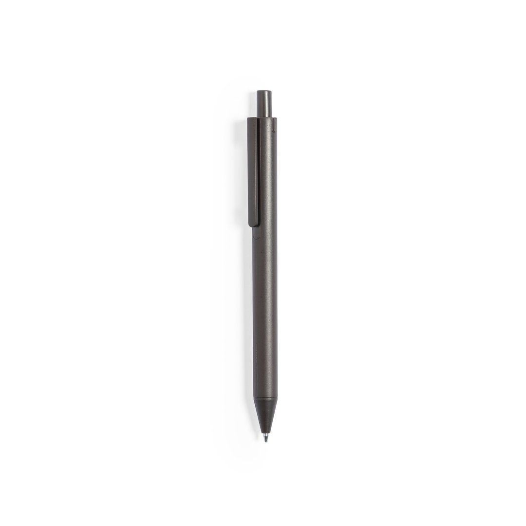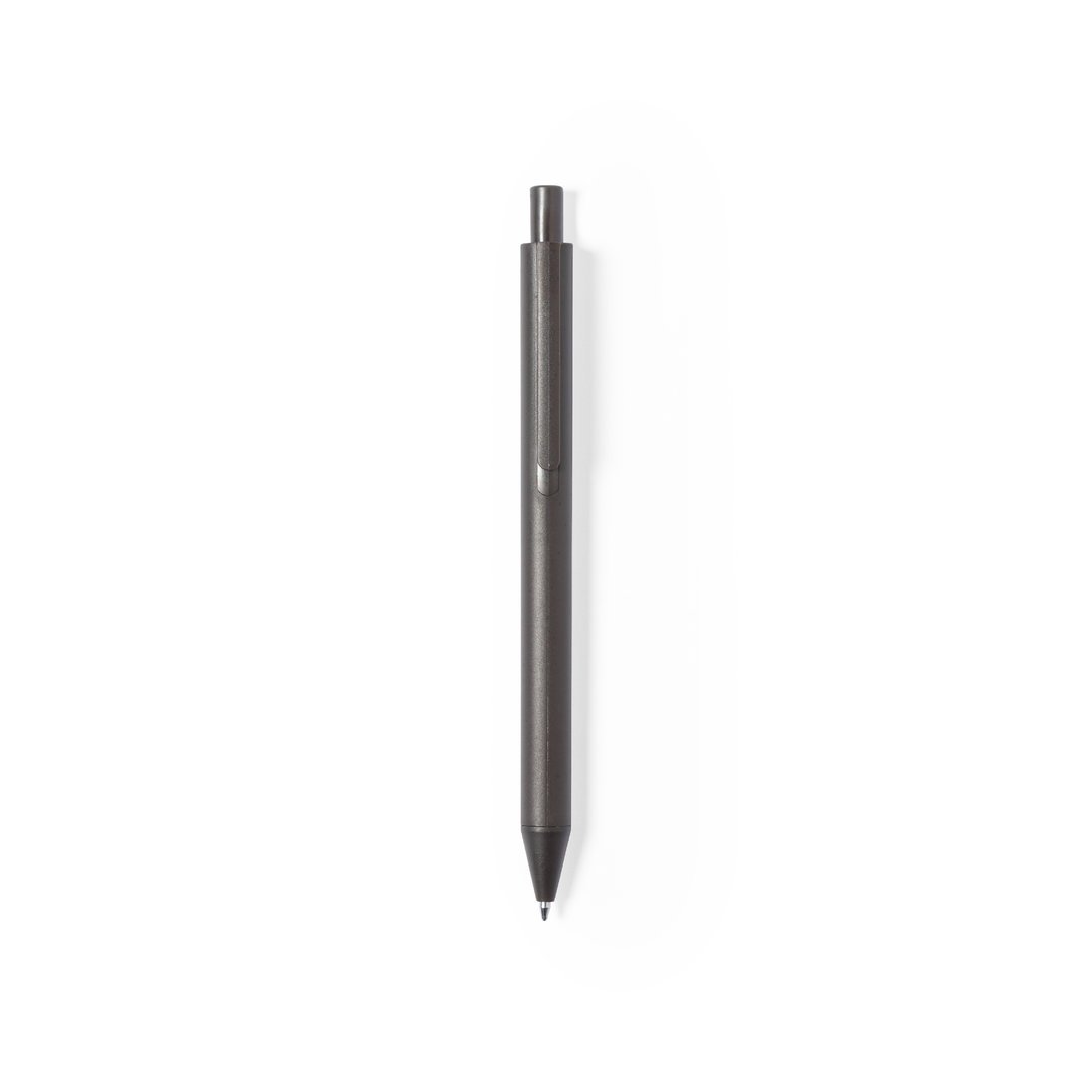 Stylo de la ligne nature, avec un corps en fibres de café et des détails assortis. Mécanisme à bouton-poussoir et encre bleue, avec un emblème en fibres de café sur le corps.