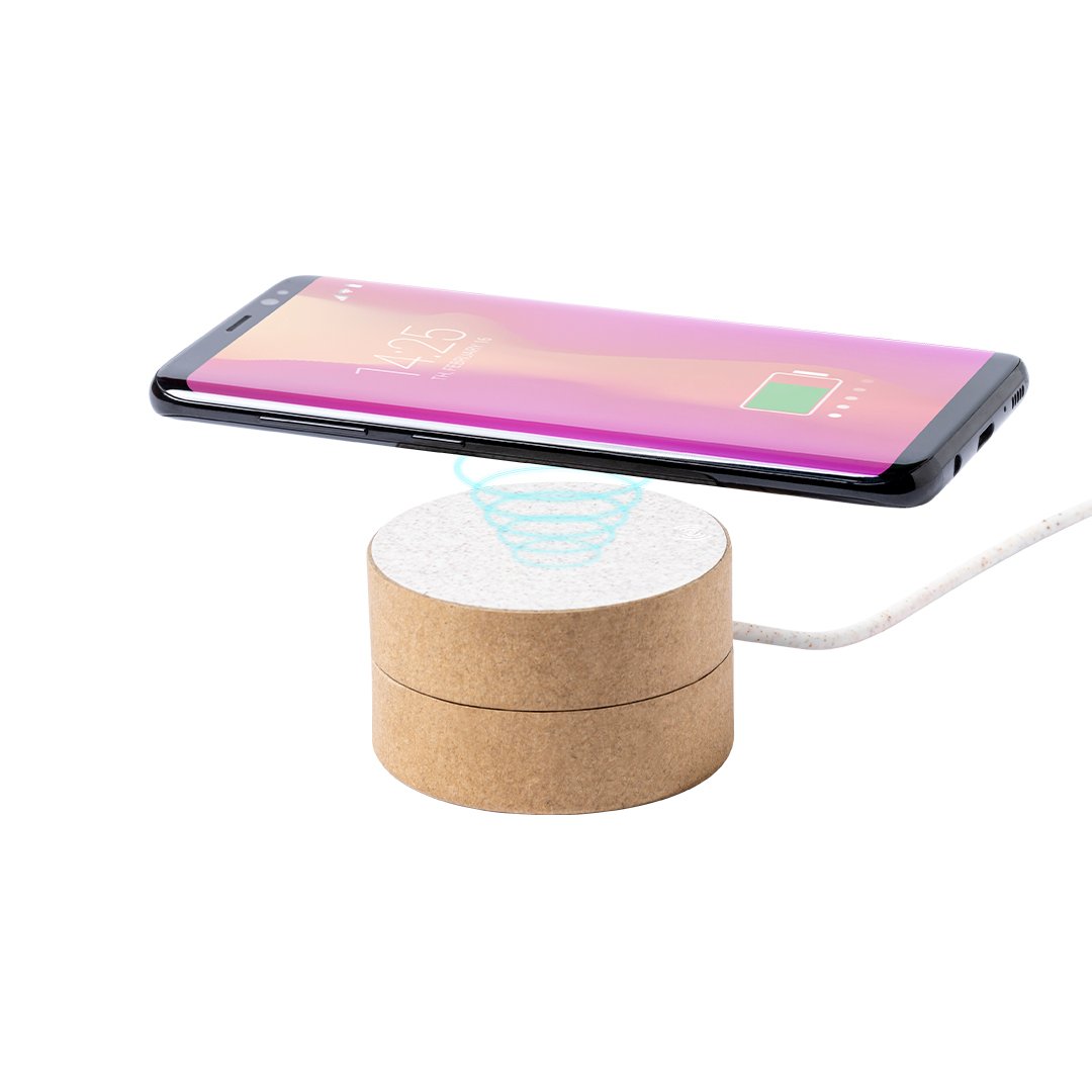 Chargeur sans fil circulaire original de la gamme éco-friendly. Boîtier en carton recyclé, contribuant à la conservation des forêts et réduisant considérablement l’empreinte carbone, avec surface de charge et câble en canne de blé. Compartiment intérieur pour ranger le câble et l’emporter partout. Indicateur d’état de charge par LED, compatible avec les smartphones dotés de la technologie de charge sans fil et présenté dans une boîte attrayante éco-conçue, avec un manuel d’instructions en anglais et en espagnol.
