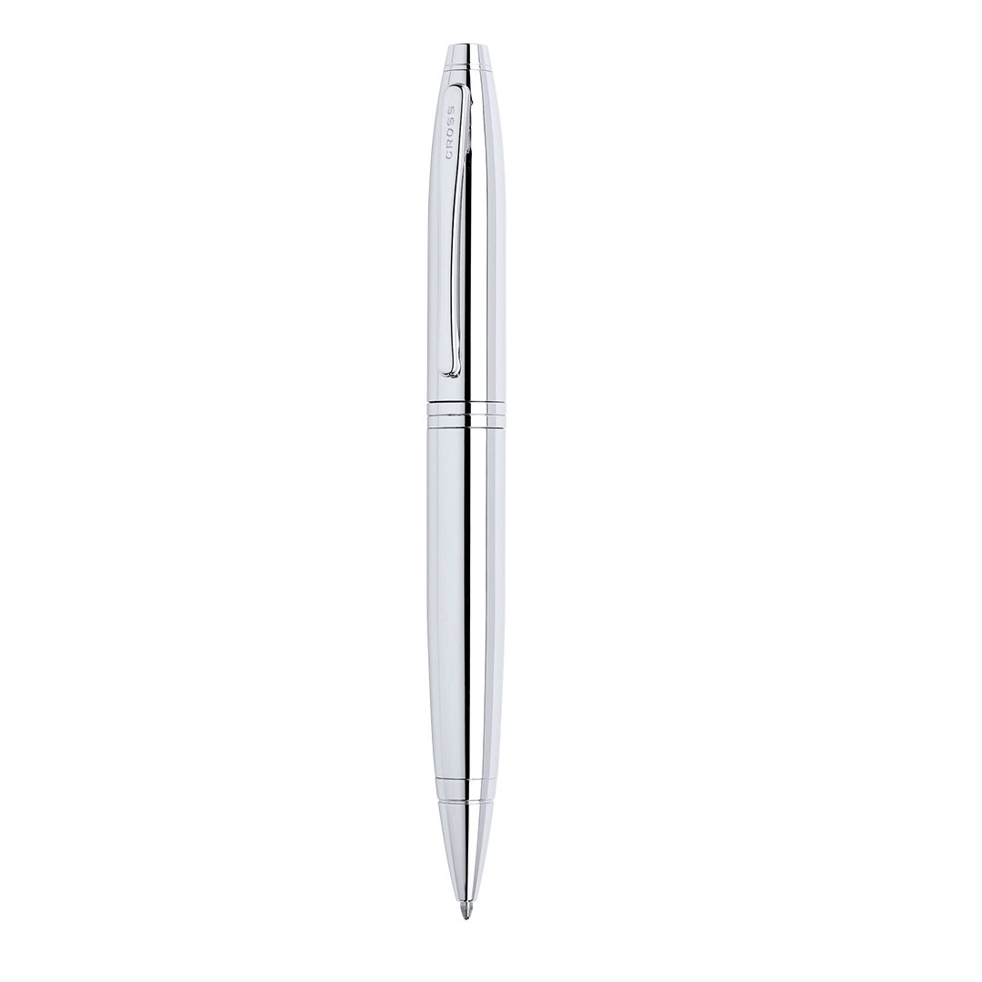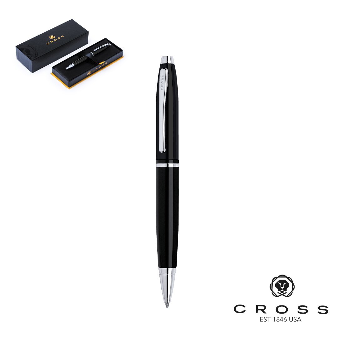 Stylo bille Calais de Cross. Avec mécanisme rétractable, design élégant bicolore et corps en métal finition lisse dans des couleurs variées. Présenté dans un élégant étui individuel noir, avec le logo de la marque et intérieur en velours doux. Encre noire.