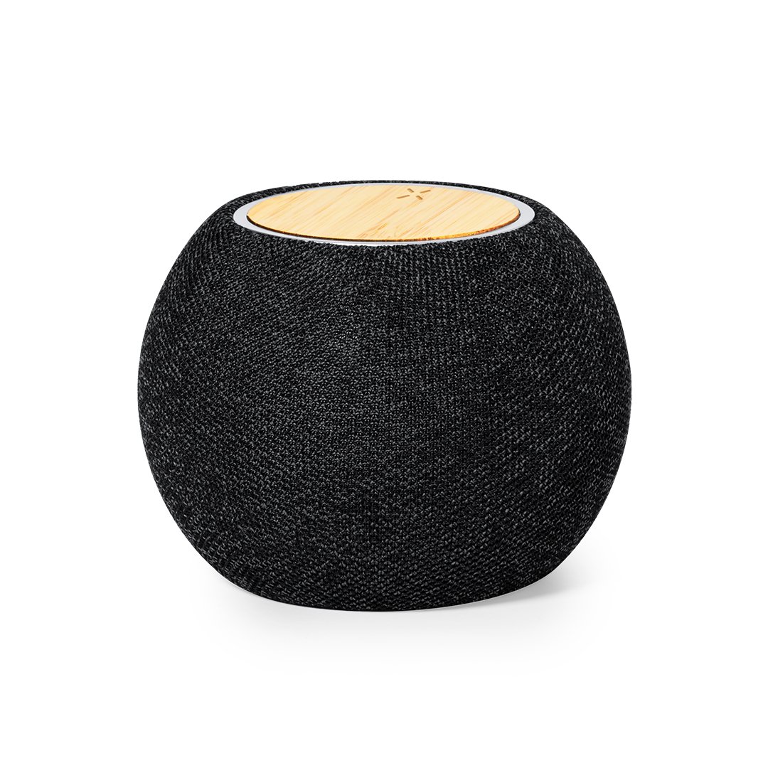Enceinte multifonction avec connexion Bluetooth®. Avec charge sans fil de 15 W pour les appareils dotés de la technologie Qi. Boîtier en bambou et polyester RPET, puissance 5W, batterie 1200 mAh et connexion Bluetooth® 5.0. Comprend un câble de chargeur de type C. Avec le logo RPET et présenté dans une boîte individuelle en kraft. Manuel d’instructions disponible en espagnol et en anglais.Le matériau RPET est fabriqué à partir de plastique recyclé, afin de favoriser la réutilisation des déchets plastiques et d’aider à la durabilité de la planète.