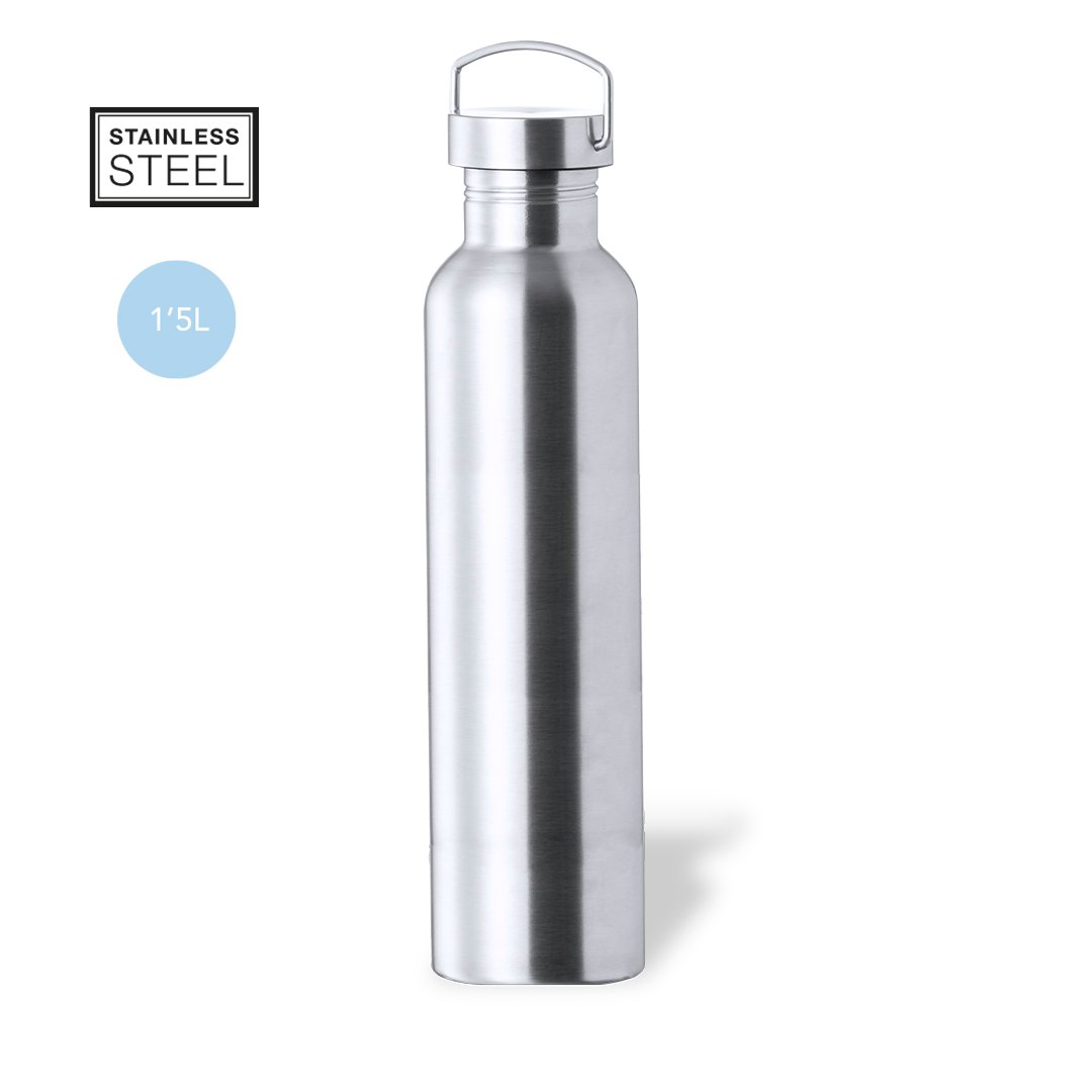 Bidon Jumbo d’une capacité de 1,5 l, fabriqué en acier inoxydable avec une finition brillante. Avec bouchon à vis original en acier inoxydable assorti et poignée intégrée. Sans BPA et présenté dans une boîte individuelle au design kraft.Manuel d’instructions disponible en espagnol et en anglais.