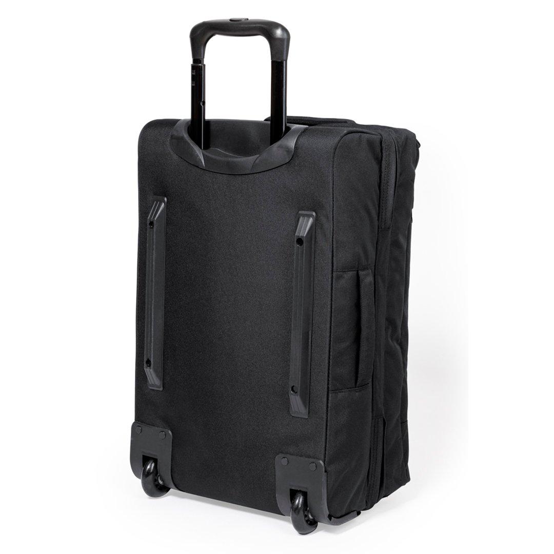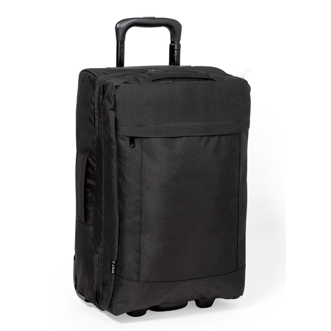 Trolley fabriqué en résistant 600D RPET. Compartiment principal avec fermeture zip à double tireur conforme aux normes TSA – Administration de la sécurité du transport – qui permet aux autorités douanières d’inspecter le contenu des bagages sans forcer ou briser la fermeture, en utilisant une clé spéciale à la disposition de l’autorité.Intérieur doublé en plus d’organisateur dans la zone centrale. Extérieur avec poche avant avec fermeture zip invisible et 2 poignées rembourrées de transport. Mécanisme extensible métallique noir, avec poignée de transport confortable et 2 roues. Logo RPET sur l’étiquette extérieure.Le matériau RPET est fabriqué à partir de plastique recyclé, ce qui encourage la réutilisation des déchets plastiques et contribue à la durabilité de la planète.