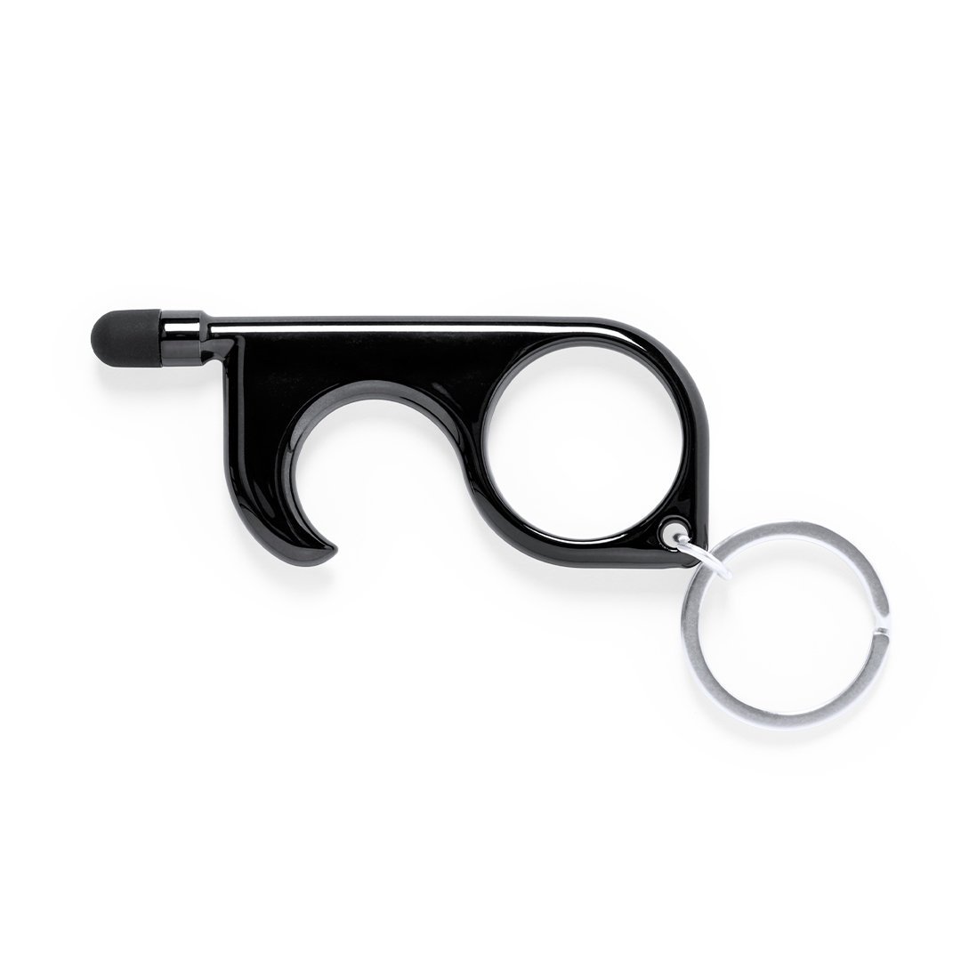 Porte-clés anti-contact hygiénique avec stylo et stylet intégrés. Fabriqué en ABS durable avec une finition métallique et disponible dans une large gamme de couleurs. Spécialement conçu pour éviter de toucher les surfaces communes avec vos mains (poignées de porte, interrupteurs, robinets publics, distributeurs automatiques de billets …). Présentation individuelle. Recommandé pour la tampographie.