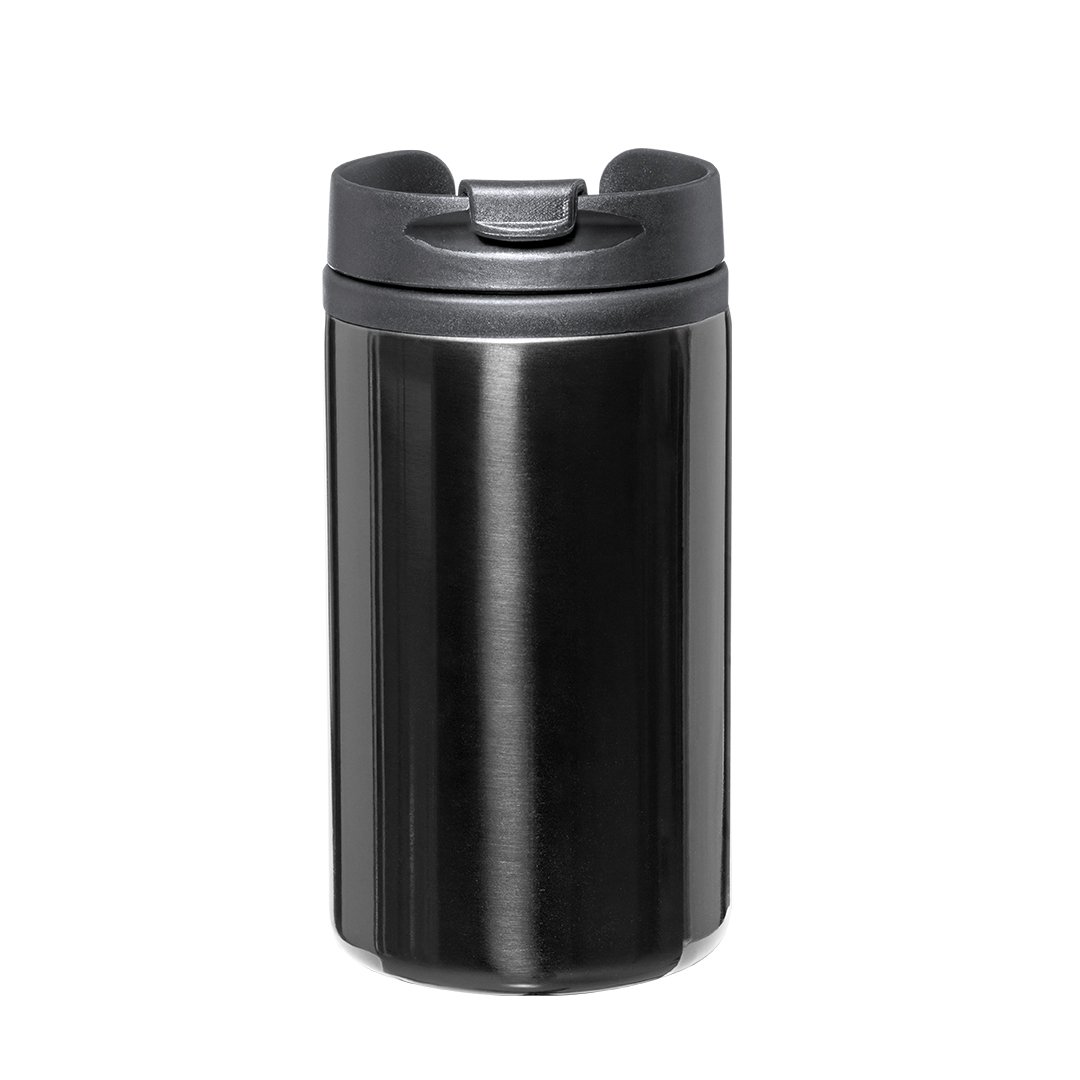 Tasse fabriquée en acier inoxydable d’une capacité de 290 ml, avec un corps en couleurs vives et une finition brillante. Équipée d’un couvercle doseur noir conçu pour éviter les fuites, sans BPA, et d’une base rembourrée en mousse douce.
