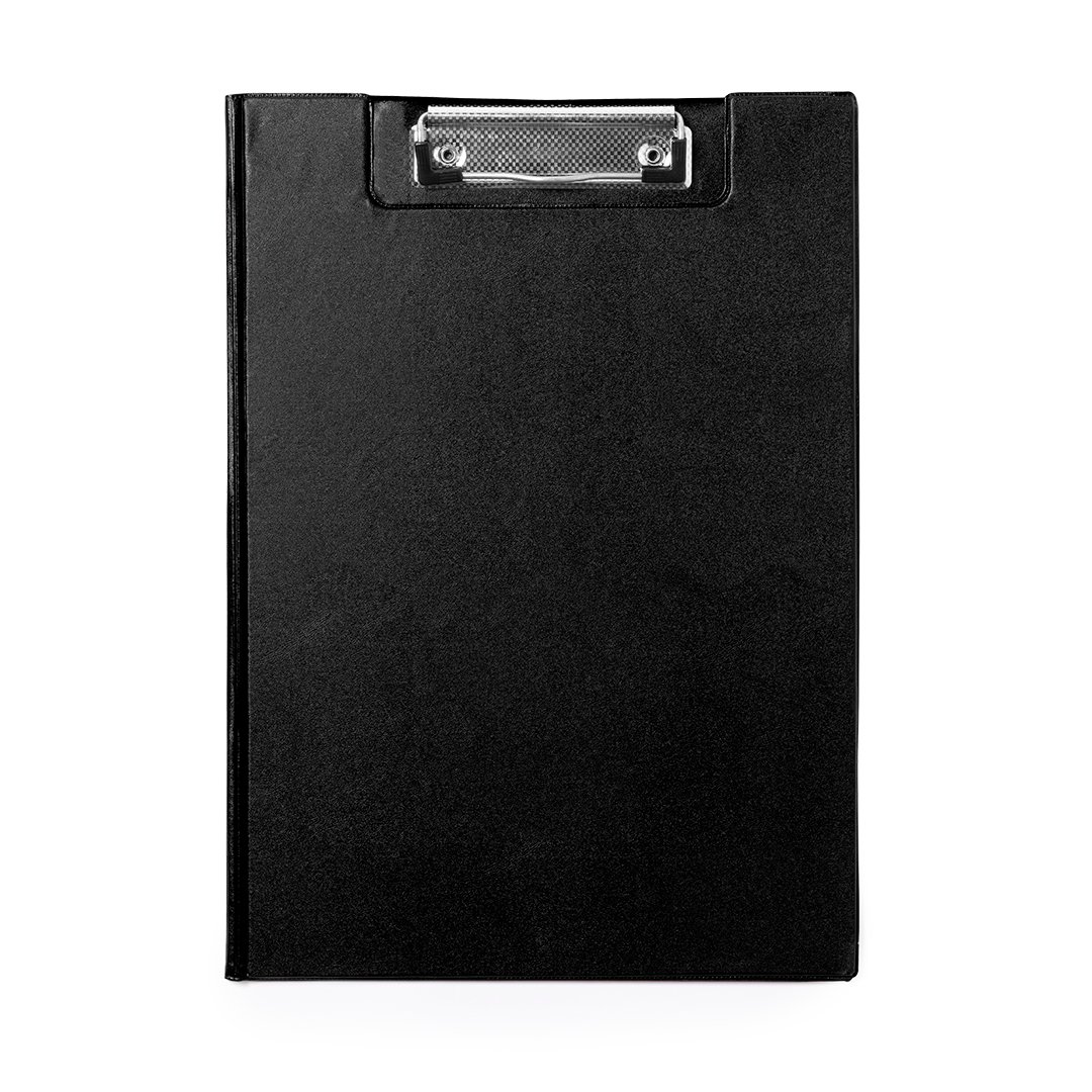 Porte documents classique avec pince, couleurs variées et finition en PVC. Avec une poche transparente à rabat intérieure en PVC résistant .
