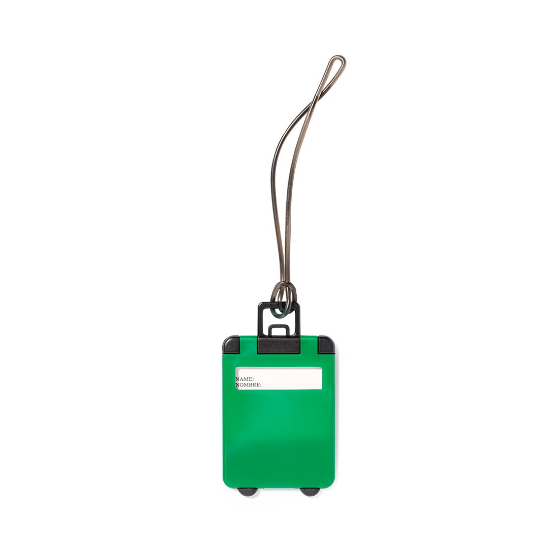 Etiquette à bagages en forme de Trolley résistant et bicolore. Disponible dans une large gamme de coloris. Avec lien d´attache résistant et étiquette d´identification en espagnol et en anglais.