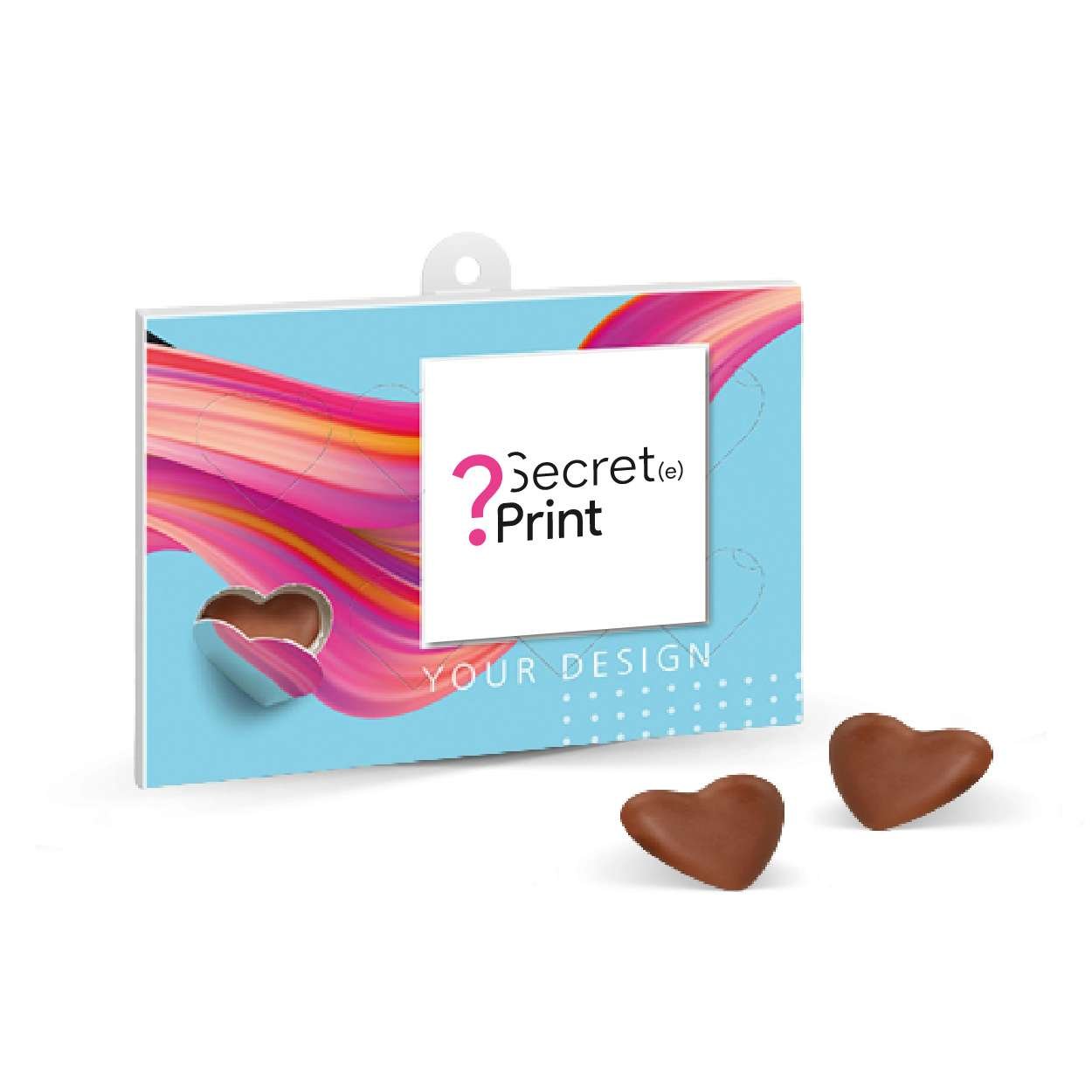 Faites fondre le cœur de vos proches avec cette boîte de cœurs en chocolat, parfaite pour la Saint-Valentin ou toute autre occasion spéciale où l’amour est à l’honneur. La boîte est conçue avec soin, livrée avec une languette de suspension murale et un support en format paysage, permettant de l’exposer de manière élégante. À l’intérieur, vous trouverez 8 petites portes renfermant un délicieux chocolat au lait. Et le meilleur de tout ? La façade de la boîte est entièrement personnalisable avec votre design, pour que vous puissiez y ajouter une touche personnelle et unique. Offrez ce cadeau attentionné et gourmand pour montrer votre amour à ceux qui vous sont chers !Un goût délicieux / Disponible en petites quantités / Pratique pour faire de la promotion / Une seule taille disponible