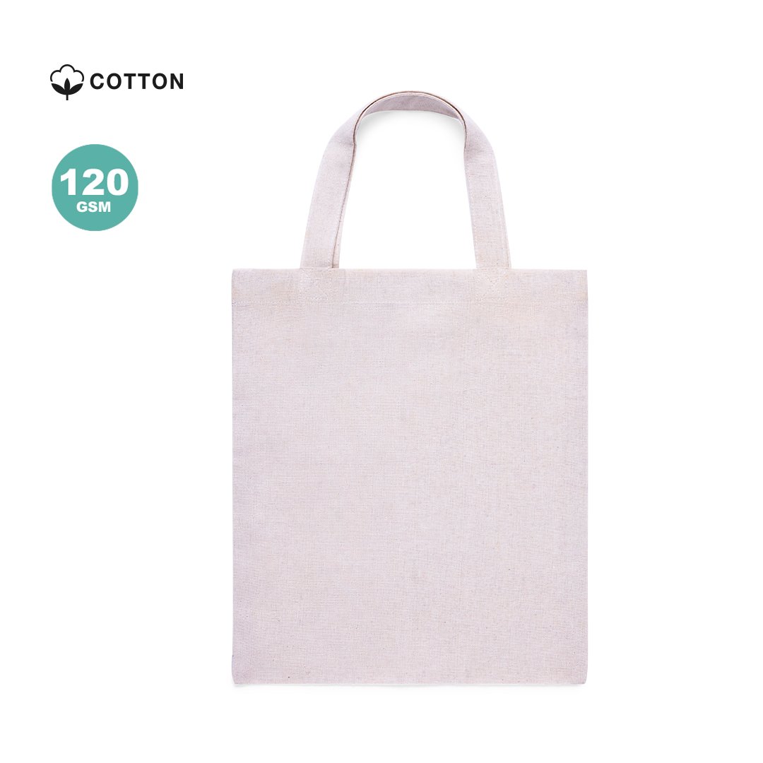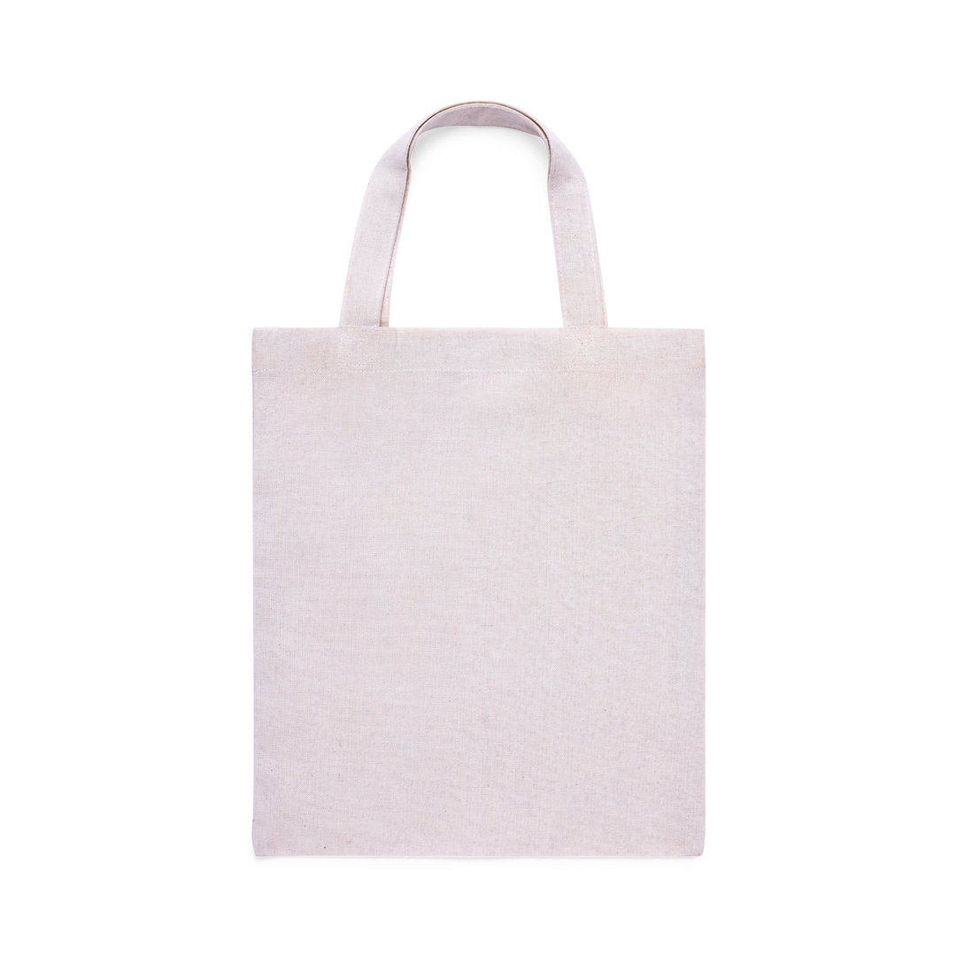 Sac en coton, finition naturelle et 120g/m2. Avec une finition cousue et des anses courtes renforcées (30 x 2,5 cm). Résistance jusqu’à 5 kg de poids.