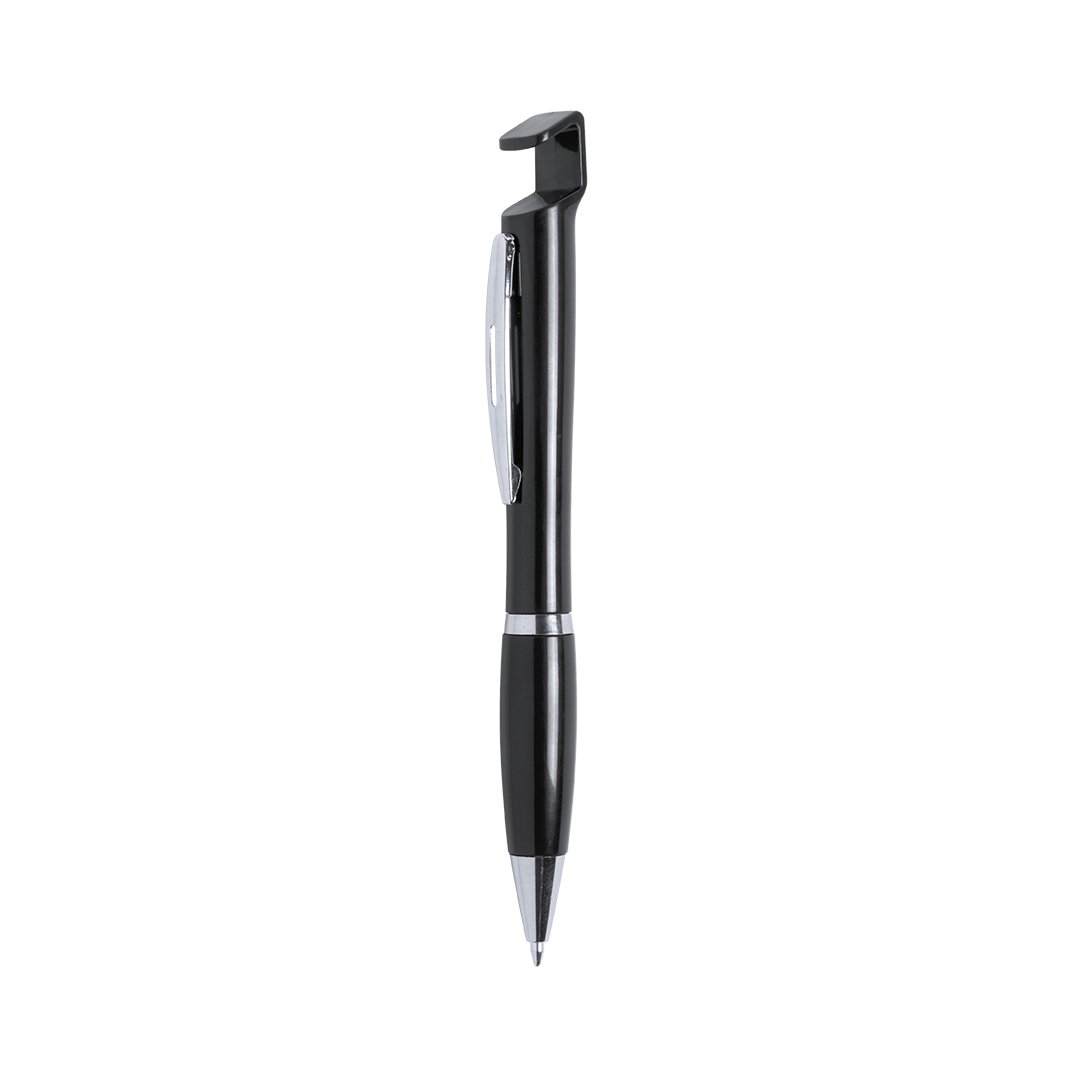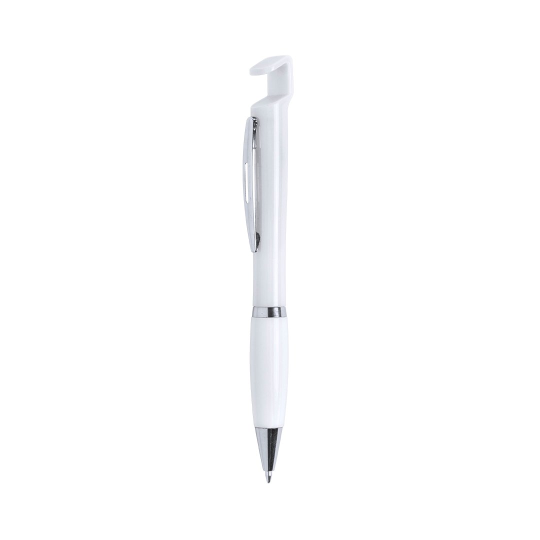 Stylo à bille avec fonction support de téléphone. Mécanisme à poussoir et design en deux tons avec des attributs couleur argent et corps dans des couleurs unies et amusantes. Clip original assorti en métal ajouré et prise en main confortable. Encre bleue.