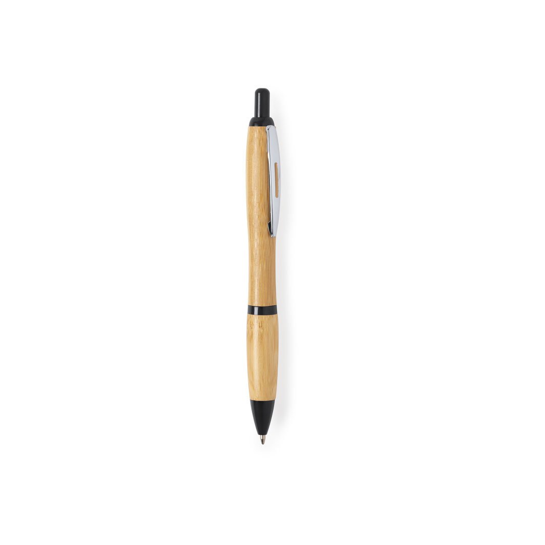 Stylo à bille poussoir. Corps en bambou avec un clip métallique original et une prise en main bambou très agréable. Encre bleue.