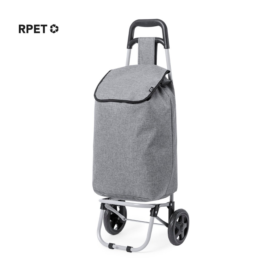 Panier pliant de la ligne nature. Fabriqué en polyester résistant 600D RPET, fabriqué à partir de plastique recyclé, pour promouvoir la réutilisation des déchets plastiques et aider à la durabilité de la planète. Avec poignée renforcée, corps tubulaire en métal, poche arrière à fermeture éclair et supports avec caoutchoucs de protection. Roues renforcées de haute qualité. Étiquette RPET distinctive sur le rabat.