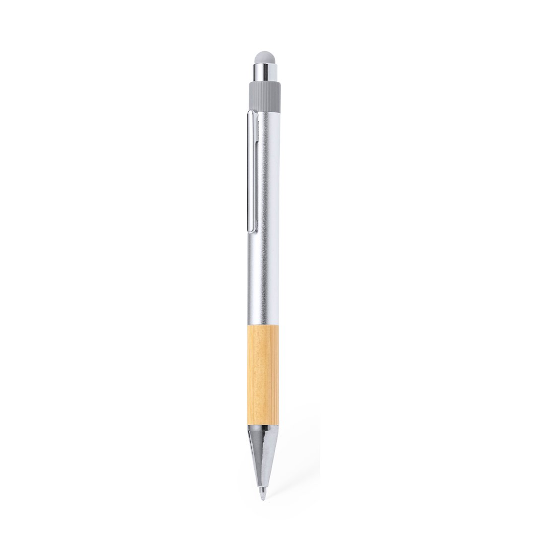 Élégant stylo pointeur en bambou et aluminium recyclé avec mécanisme poussoir. Corps en aluminium recyclé robuste avec finition mate et poignée en bambou avec pointeur sur le dessus en gris. Clip métallique, avec bouton-poussoir rétractable. En encre bleue et avec charge jumbo. Présenté dans un sac individuel recyclé.Des matériaux tels que le bambou encouragent l’utilisation de matières premières naturelles en réduisant les émissions polluantes. Il provient d’une plante très résistante et polyvalente, avec une croissance et une régénération rapides, étant une excellente alternative à l’utilisation du bois traditionnel.L’aluminium recyclé est un matériau avec des possibilités de recyclage presque infinies, sans perdre ses propriétés d’origine et consommant moins d’énergie dans ce processus.Certification GRS (Global Recycled Standard / Global Recycled Recycled Standard), qui garantit l’origine recyclée du matériau utilisé pour fabriquer le produit.