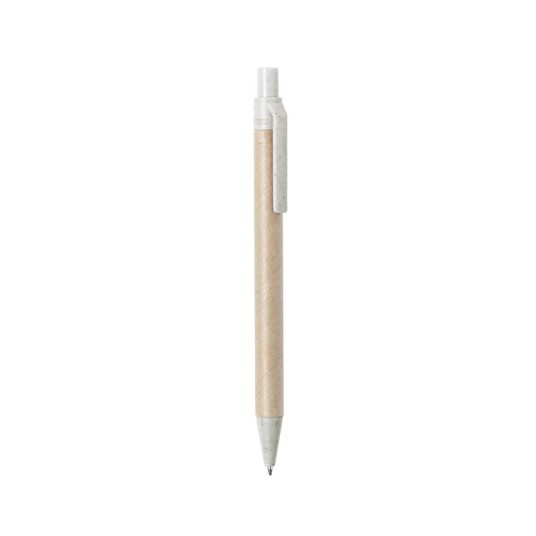 Stylo de ligne naturelle avec le mécanisme de bouton-poussoir. Combinaison de corps en carton recyclé de couleur naturelle et d’accessoires en canne à blé et ABS, afin de promouvoir l’utilisation et le recyclage des matières premières, réduisant ainsi les émissions polluantes.Disponible dans une large gamme de couleurs, à l’encre bleue. Insigne de paille de blé sur le dessus du stylo.