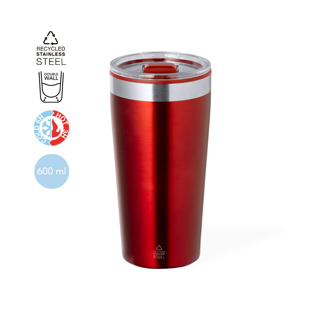 Verre thermique en acier inox recyclé, avec double paroi et 600 ml de capacité. Comprend un couvercle avec doseur et une ouverture facile. Il est idéal pour votre bureau, table ou toute autre surface où vous pouvez tranquillement savourer votre boisson préférée. Avec logo Acier Inox Recyclé. L’acier est l’un des matériaux les plus demandés et se trouve presque partout, des produits de tous les jours aux grandes constructions. Avec d’innombrables propriétés, parmi lesquelles se distinguent la durabilité et un haut degré de réutilisation, il constitue une alternative très appréciée dans les solutions de durabilité. Correctement traité, il permet d’obtenir de nouvelles ressources d’utilisation infinie.