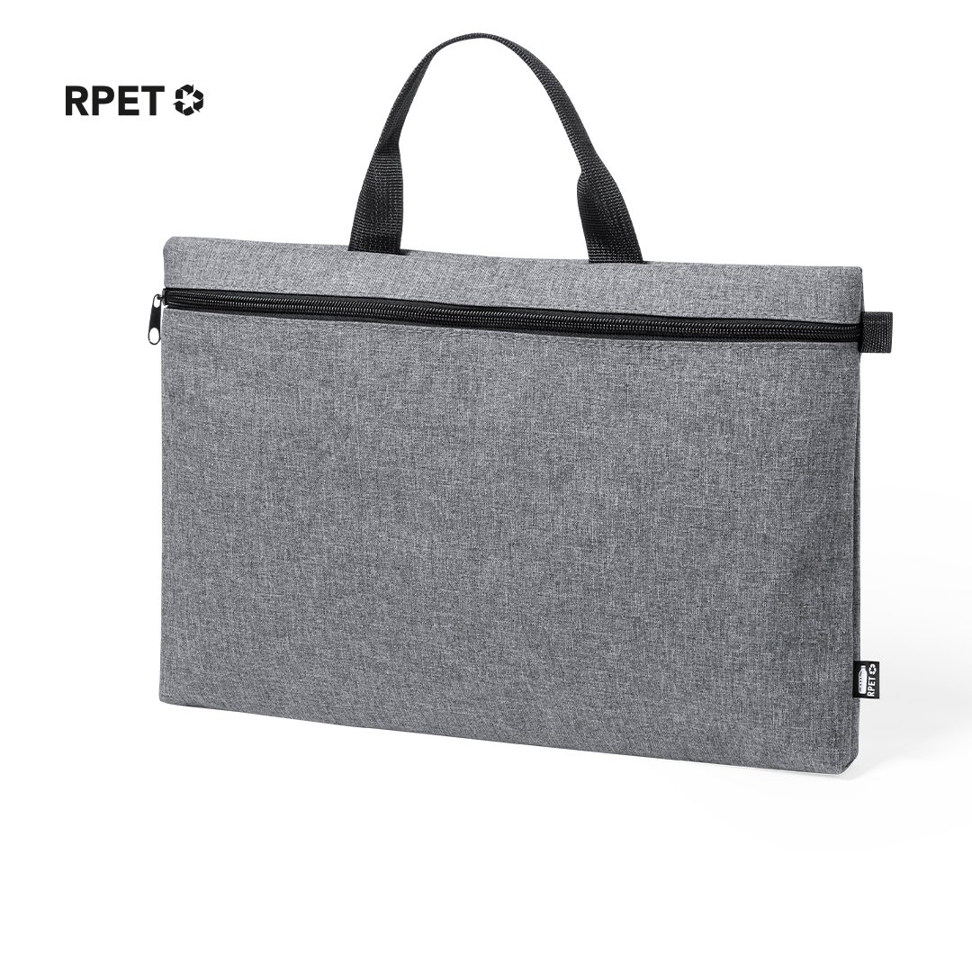 Porte documents de la ligne naturelle et en effet de mélange RPET 600D résistant, fabriqué à partir de plastique recyclé pour promouvoir la réutilisation des déchets plastiques et contribuer à la durabilité de la planète. Détails noirs et compartiment principal avec fermeture éclair. Poignées assorties résistantes et RPET distinctif sur l’étiquette extérieure.