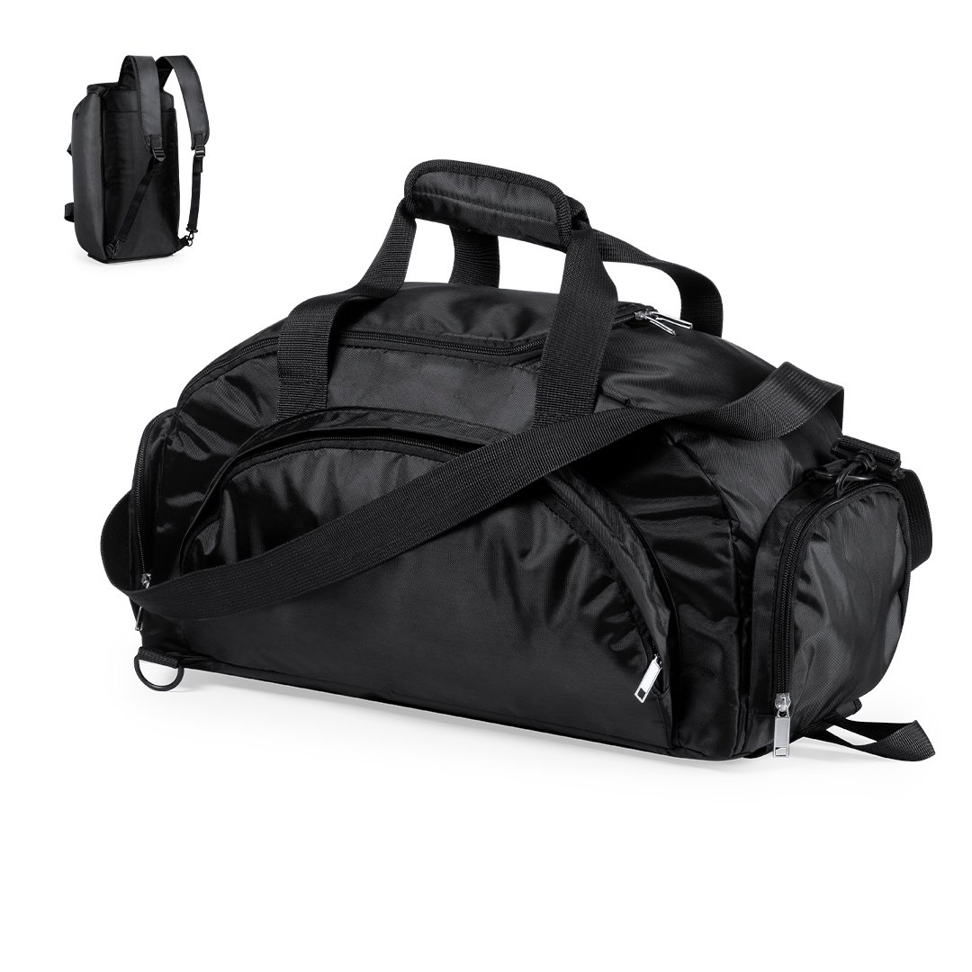 Sac à dos en nylon 420D résistant. Compartiment zippé séparé pour les chaussures et poche zippée latérale. Compartiment principal avec fermeture éclair à double tirette et poignées de transport renforcées, avec fermeture velcro. Bretelles et dos rembourrés avec bretelles réglables.