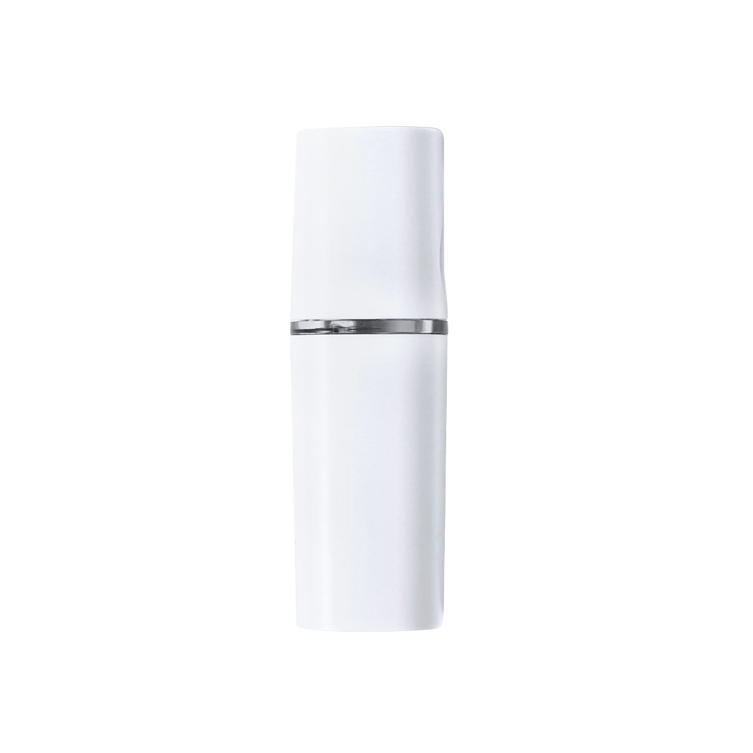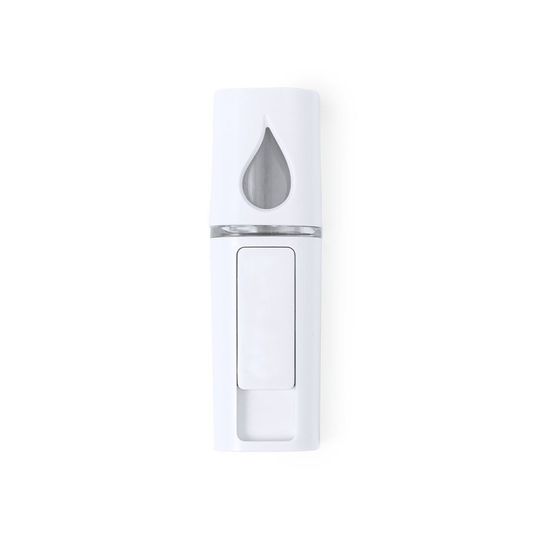 Pulvérisateur électrique de poche. Rafraîchissant et hydratant, crée une brume légère à vaporiser sur la peau en glissant le capuchon de protection. Récipient rechargeable de 15ml avec bouchon à vis, indicateur de niveau et une lumière violette élégante. Avec miroir sur le couvercle et alimenté par une batterie de 250 mAh, câble inclus. Présenté dans une boîte individuelle.