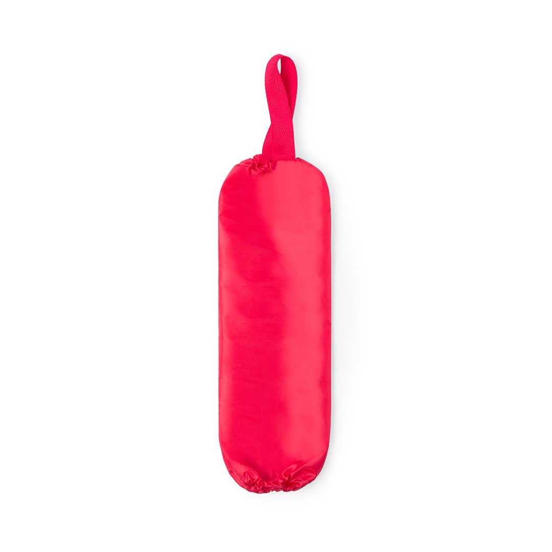 Sac de recyclage pour stocker les sacs en plastique. En polyester 210D doux de tons vifs et avec ouverture supérieure et inférieure. Avec sangle de suspension de couleur assortie.