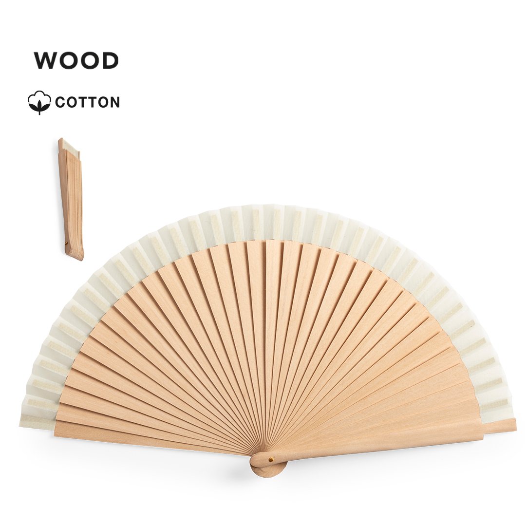 Éventail en bois et coton. Présenté dans une boîte individuelle éco design.