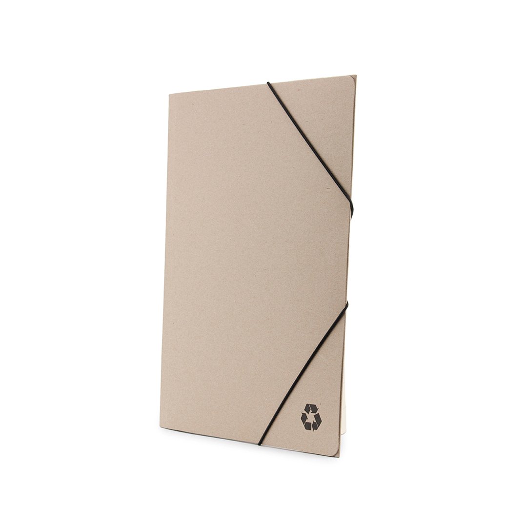 Porte-documents écologique de grande capacité avec fermeture élastique. En carton recyclé souple avec système de fermeture 3 plis