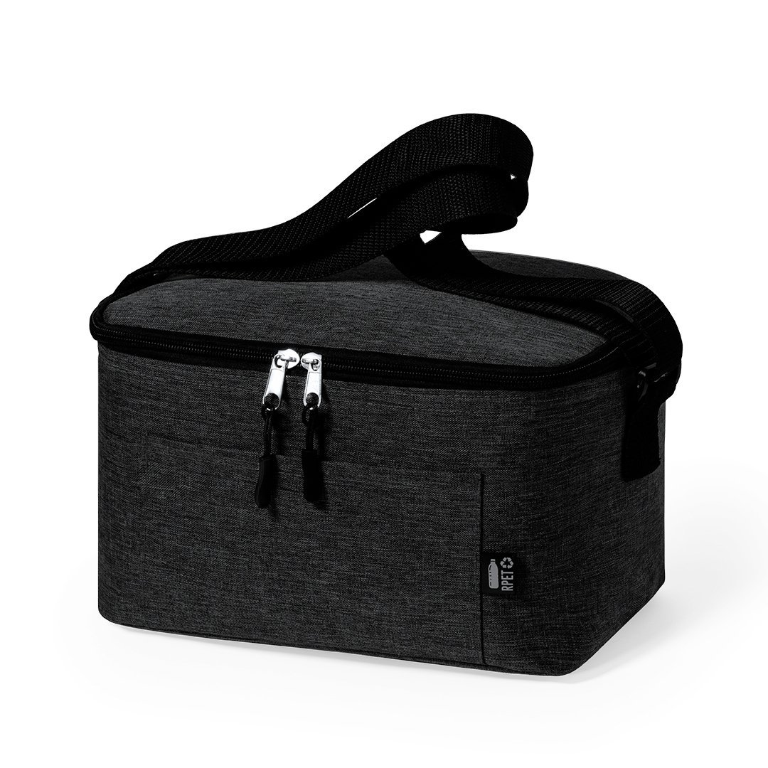 Réfrigérateur de la ligne Nature en polyester résistant 600D RPET effet de mélange, fabriqué à partir de plastique recyclé pour favoriser la réutilisation des déchets plastiques et contribuer à la durabilité de la planète. Détails noirs et base renforcée. Compartiment principal avec fermeture à glissière et intérieur en aluminium. Comprend une poche extérieure et une bandoulière réglable, avec badge RPET sur l’étiquette extérieure.