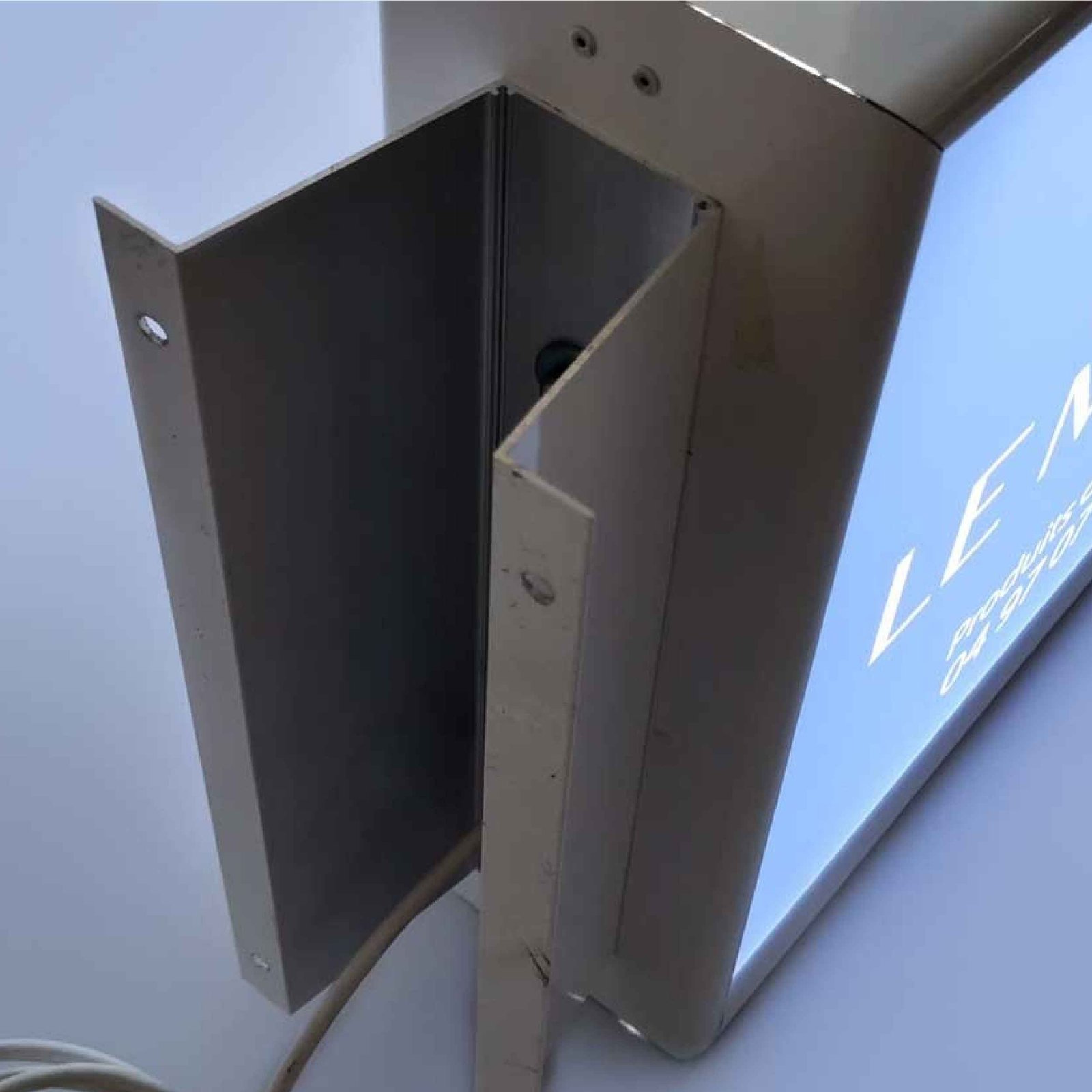 L’enseigne lumineuse double face de SecretPrint est un excellent choix pour attirer l’attention sur votre entreprise de manière efficace, de jour comme de nuit. Cette enseigne est constituée d’une structure robuste en aluminium laqué en blanc ou en noir, avec deux plaques de plexiglas de 3 mm d’épaisseur de chaque côté. Les plaques de plexiglas offrent une touche lumineuse, créant une visibilité accrue, même lorsque la lumière naturelle est absente.Cette enseigne est conçue pour une installation facile, ne nécessitant qu’une clé, une perceuse et un tournevis. Elle est adaptée pour une utilisation intérieure ou extérieure et est fabriquée dans des ateliers de signalisation de qualité professionnelle pour garantir une durabilité exceptionnelle.Facilité d’Installation / Structure Robuste / Durabilité des Encres / Économie d’Énergie / Tailles Limitées