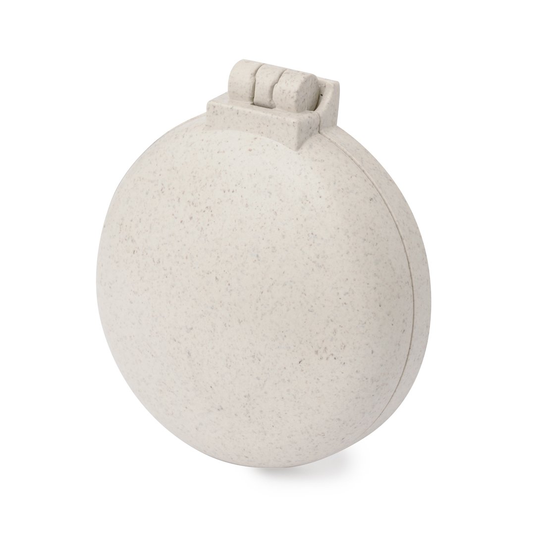 Brosse pliable avec miroir en paille de blé. Avec poils compacts souples qui peuvent être pliés et avec miroir intégré sur le couvercle. Présenté dans un sac individuel en papier kraft.La paille de blé favorise l’utilisation de matières premières naturelles, réduisant ainsi les émissions polluantes.