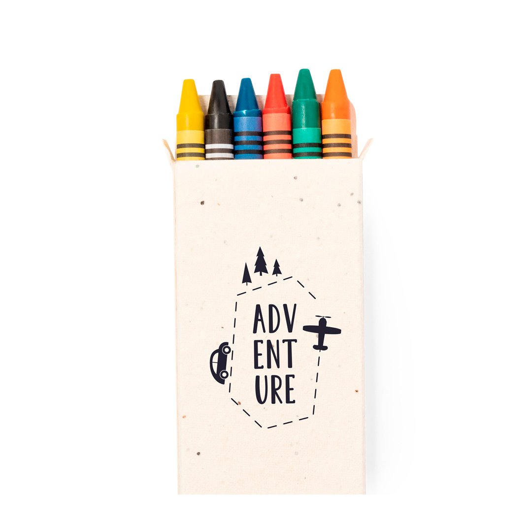 Set de 6 cires dans une gamme variée de couleurs, présentées dans une boîte en carton naturel avec des graines. Il comprend des graines de pétunia dans la boîte, le transformant ainsi en carton plantable à la fin de sa durée de vie. Fleurs dans des couleurs assorties, avec des instructions de plantation sur le couvercle arrière.