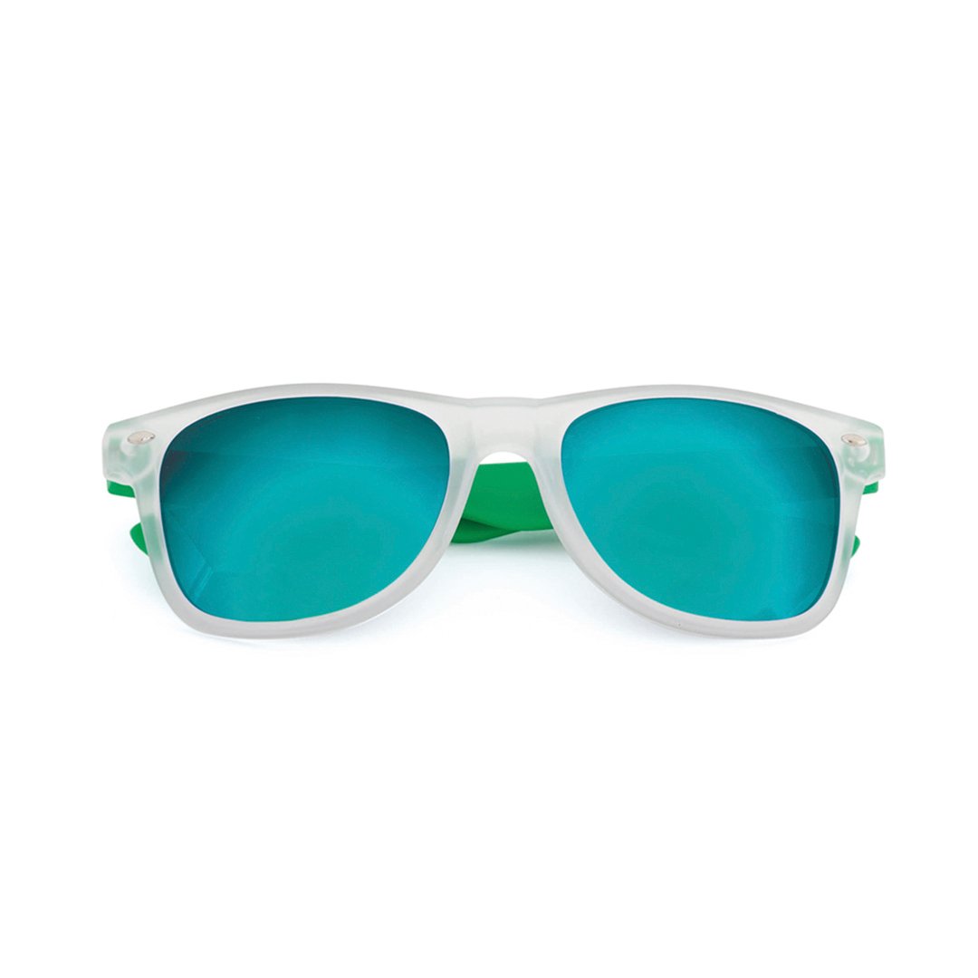 Lunettes de soleil avec protection UV400, forme classique. Avec monture finition translucide dans des coloris gais et des lentilles en miroir couleur assortie.