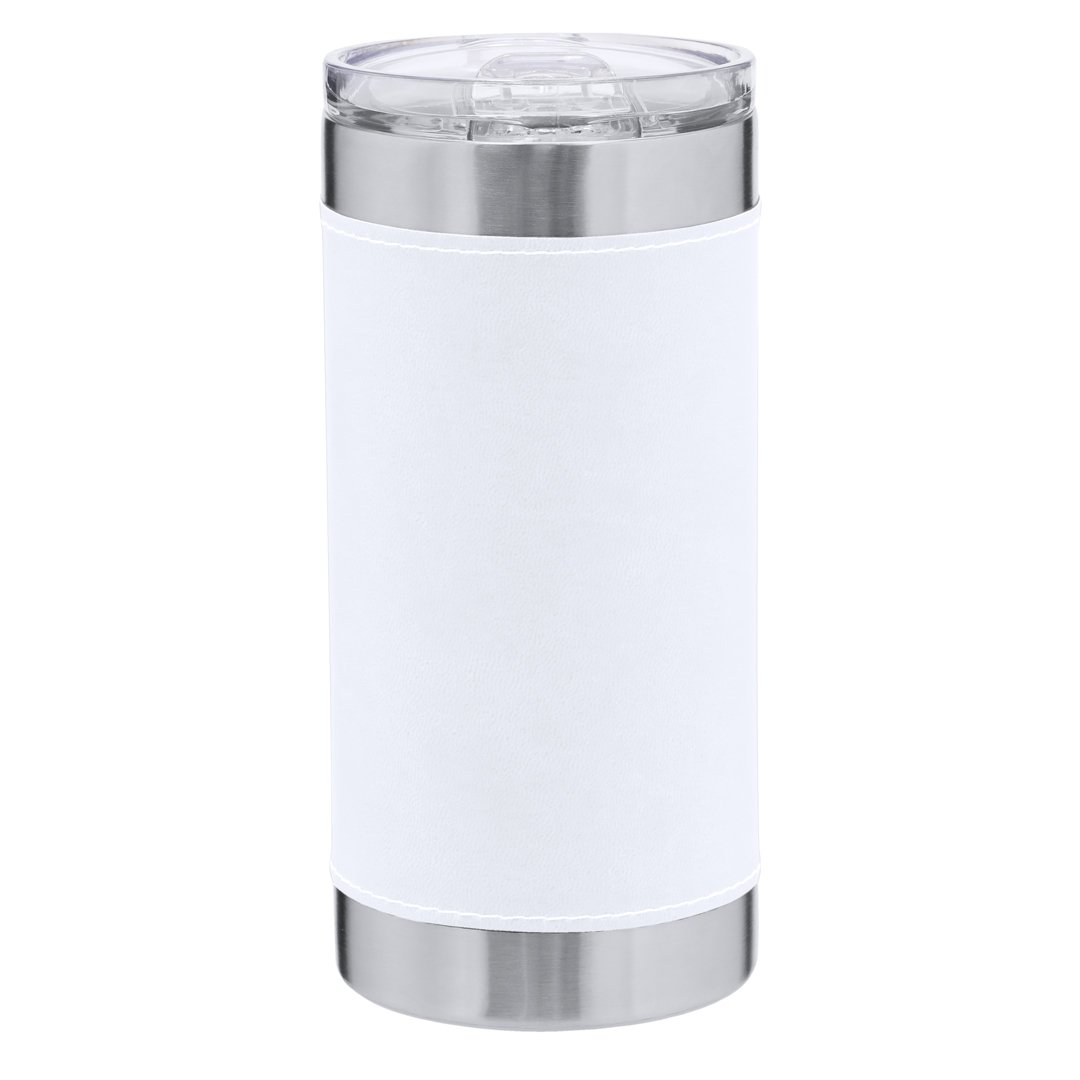 Gobelet isotherme en acier inoxydable à double paroi et PU sophistiqué. Avec une capacité de 530 ml. Comprend une élégante housse en PU avec des coutures blanches distinguées. Comprend un couvercle transparent avec distributeur, facile à ouvrir et sans BPA. Il est idéal pour votre bureau, table ou toute autre surface où vous pouvez tranquillement savourer votre boisson préférée.