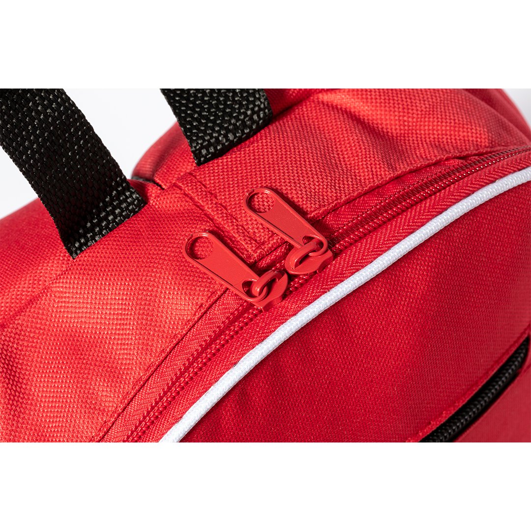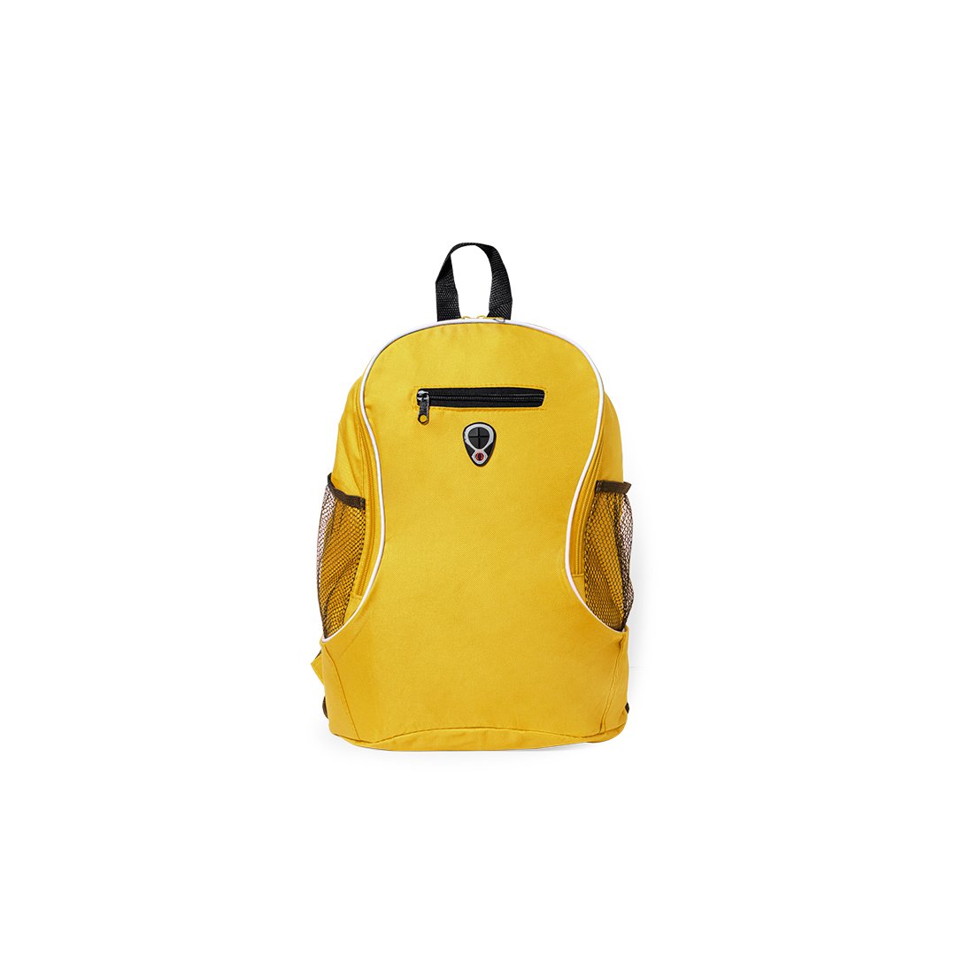 Sac à dos en polyester 600D. Fabriqué dans des couleurs amusantes et variées avec une grande ouverture de votre poche principale et poche pratique dans la partie centrale. Il dispose de deux poches élastiques en filet sur les côtés et une sortie écouteurs originale sur le devant. Accessoires de couleur noire avec des bretelles confortables, rembourrées et réglables.